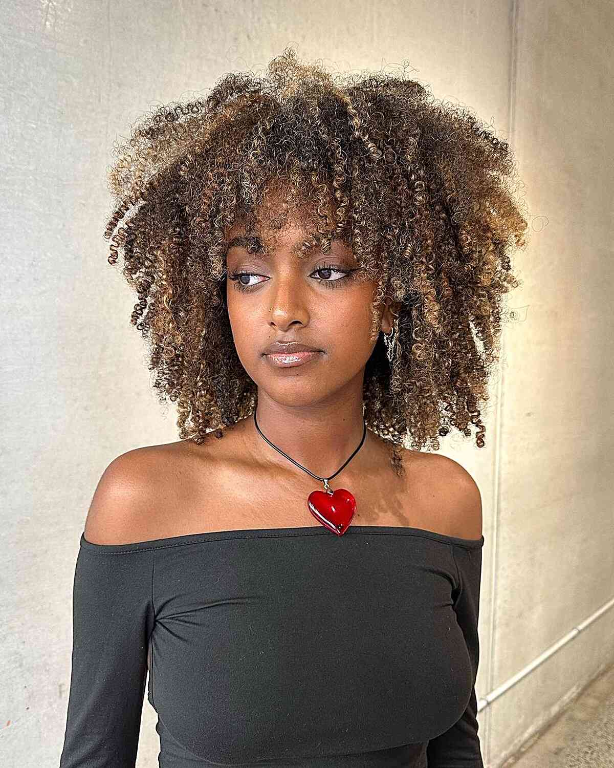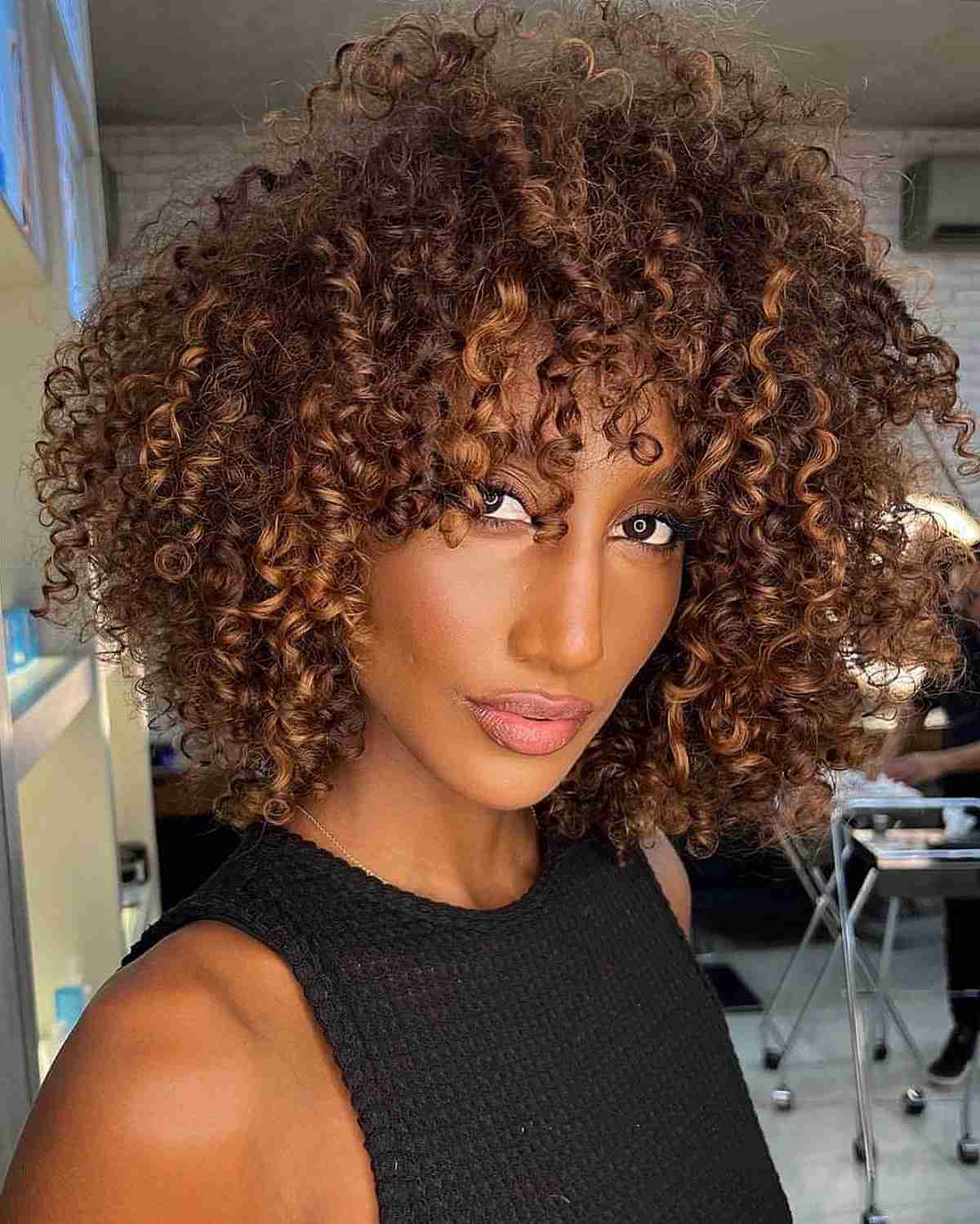 4. Curly Bob with Bangs: Combine curls and bangs for a chic curly bob that adds a touch of attitude and flair to your appearance.