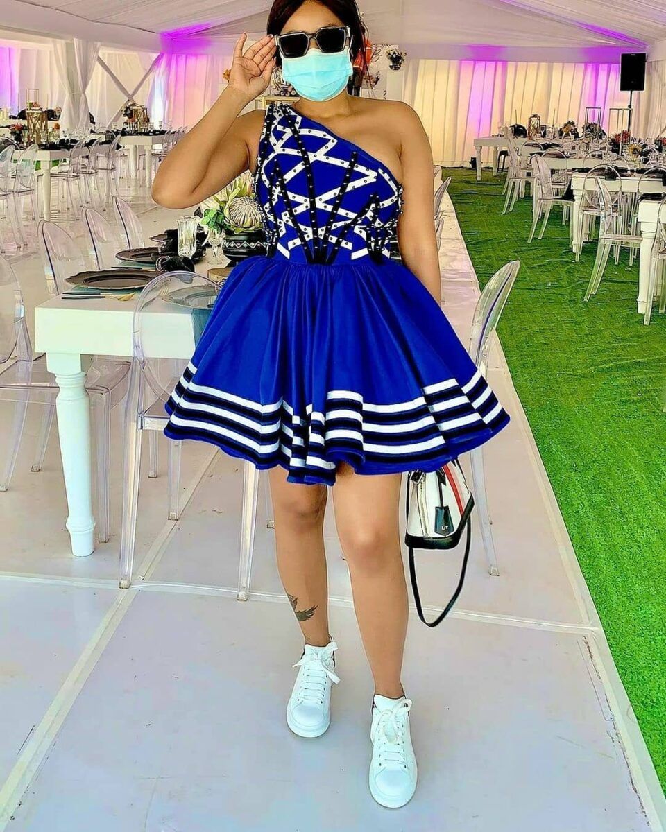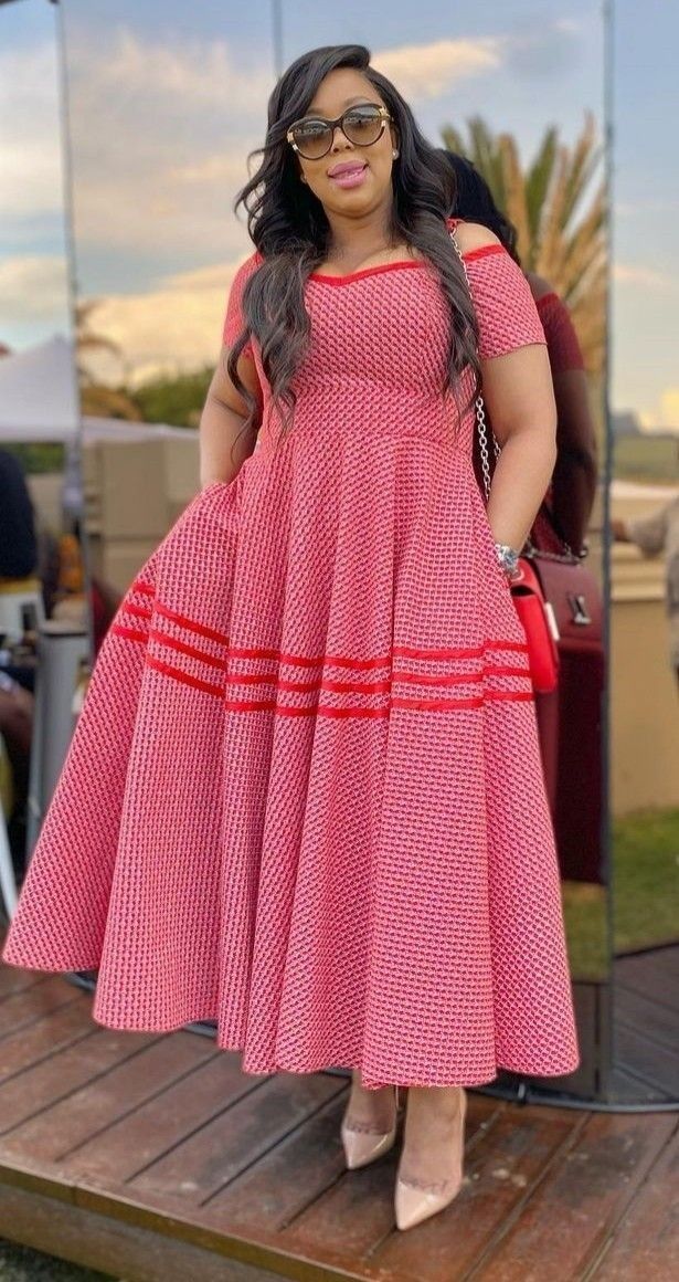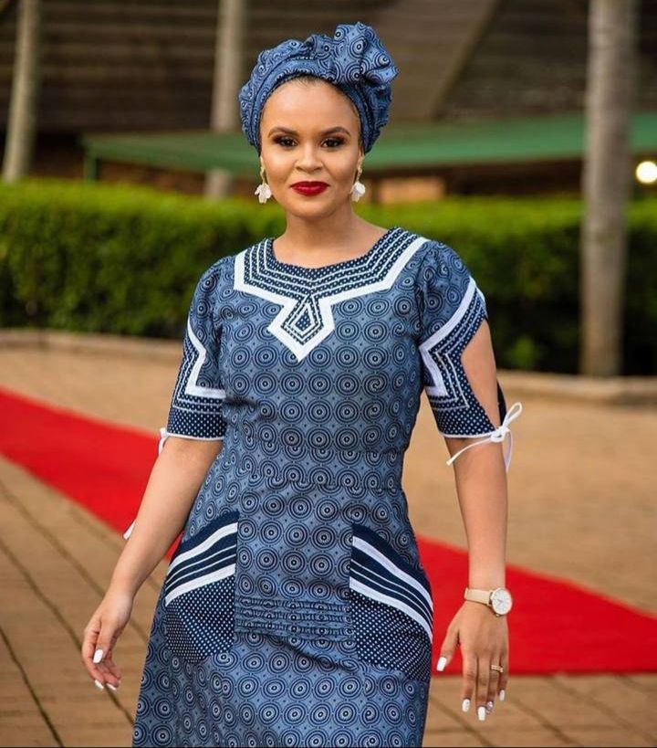 Shweshwe, a traditional South African fabric, is famous for its intricate geometric patterns and vibrant colors. It has been transformed into various styles, from elegant dresses and skirts to modern jumpsuits and jackets. Shweshwe outfits, known for their versatility, are a celebration of South African heritage.