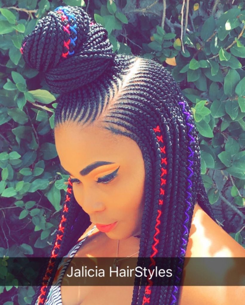 3. Ghana Braids: Ghana braids, also known as cornrows, are a traditional African hairstyle that has gained popularity worldwide. They can be styled into intricate patterns and designs, and you can also add extensions for a more dramatic effect.