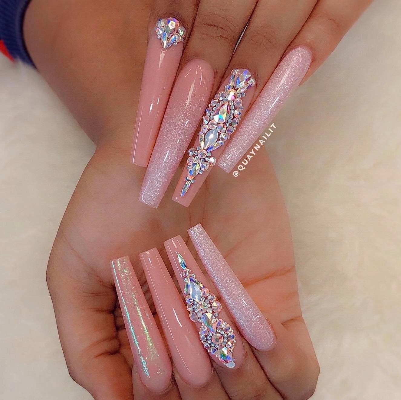 Stiletto Pointed Nails with Rhinestones ▷ 40 Elegant Ideas 💅