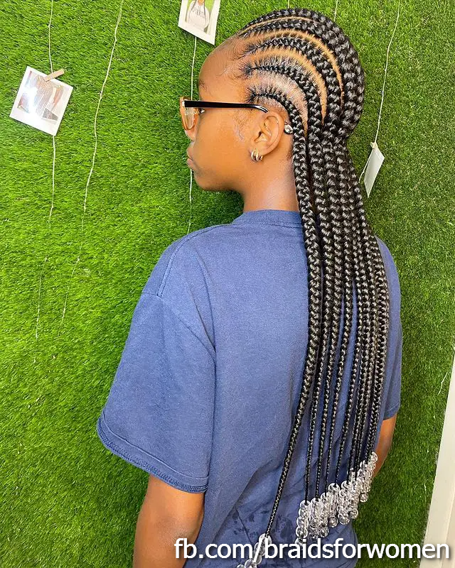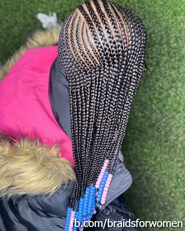 With clean, thin lines that resemble stitches, these braids create a neat, geometric look. They can be done in straight lines or in intricate patterns, depending on your preference.