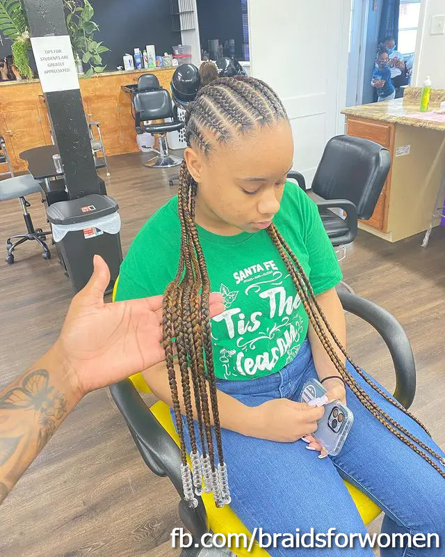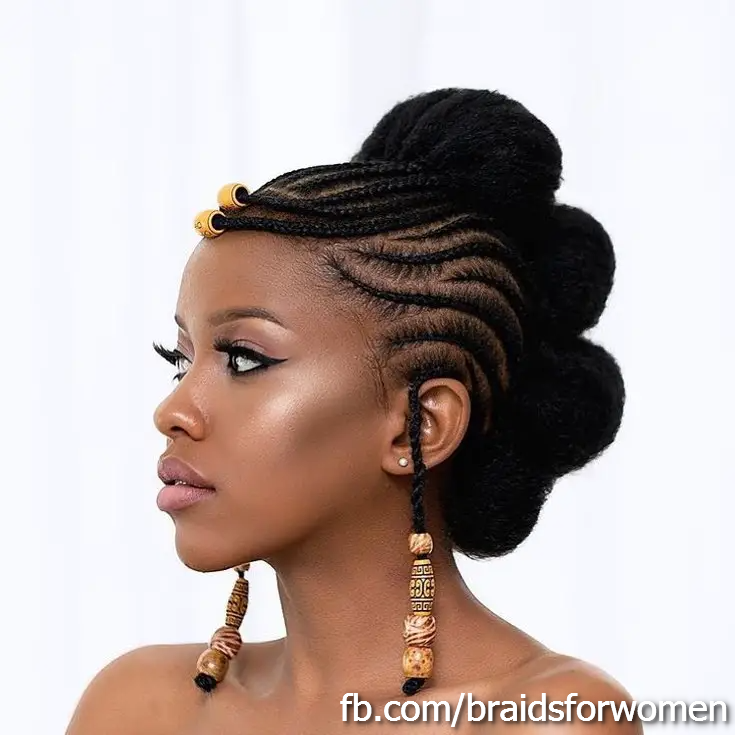 Characterized by a central cornrow with braids hanging on the side and often adorned with beads, this style celebrates the beauty of the Fulani people of West Africa.
