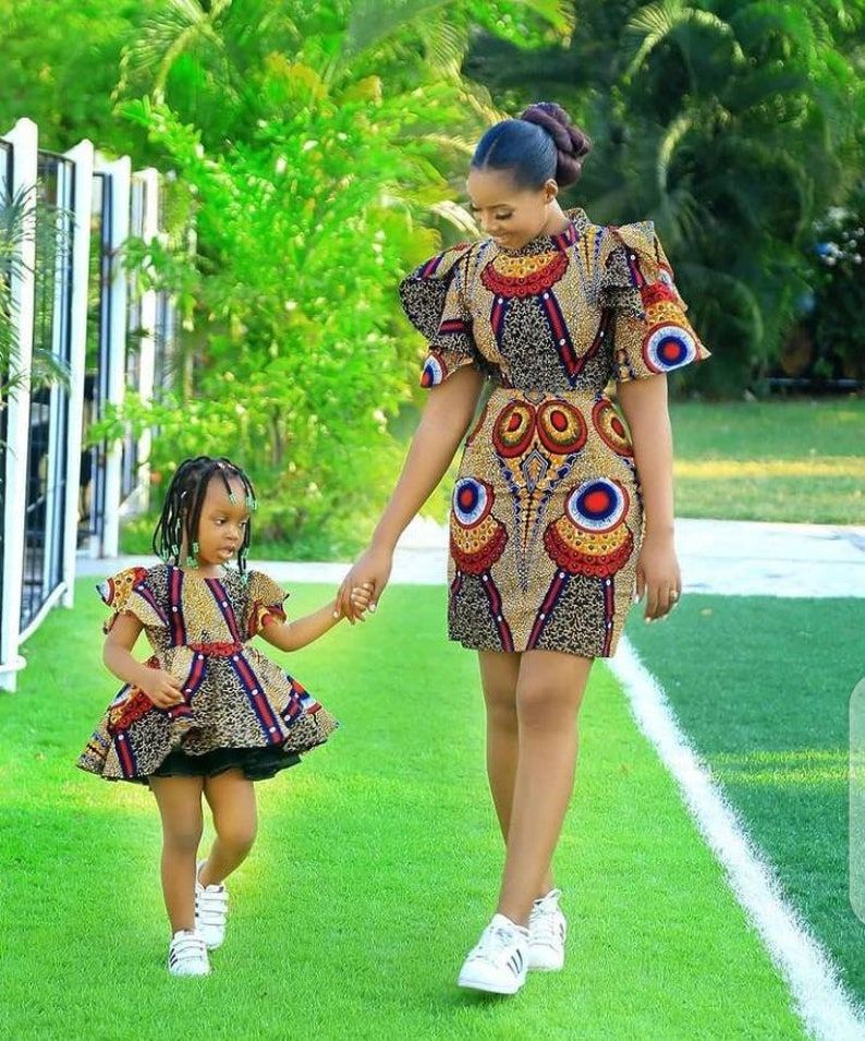 Explore the vast array of traditional African prints, such as Kente, Dashiki, or Kitenge, for your mommy-daughter dresses. These prints showcase the beauty and diversity of African culture. Choose dresses with traditional African motifs and incorporate modern cuts and designs for a contemporary twist.