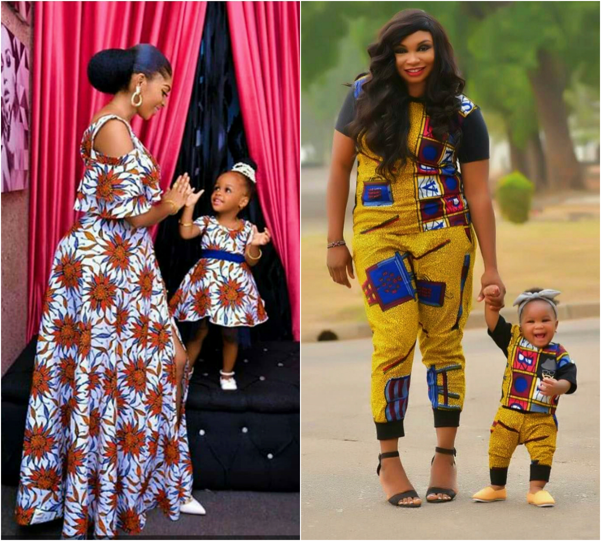 Ankara prints are renowned for their bold and vibrant patterns, making them a popular choice for mommy-daughter dresses. Choose a matching Ankara dress set with intricate designs and eye-catching colors. Whether it’s a flared maxi dress or a fitted knee-length dress, you and your little one will surely turn heads wherever you go.