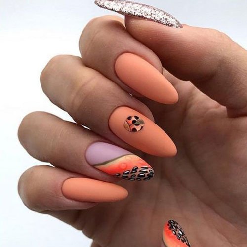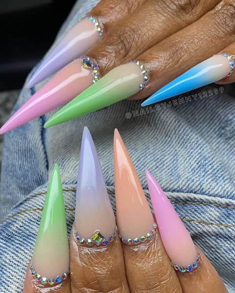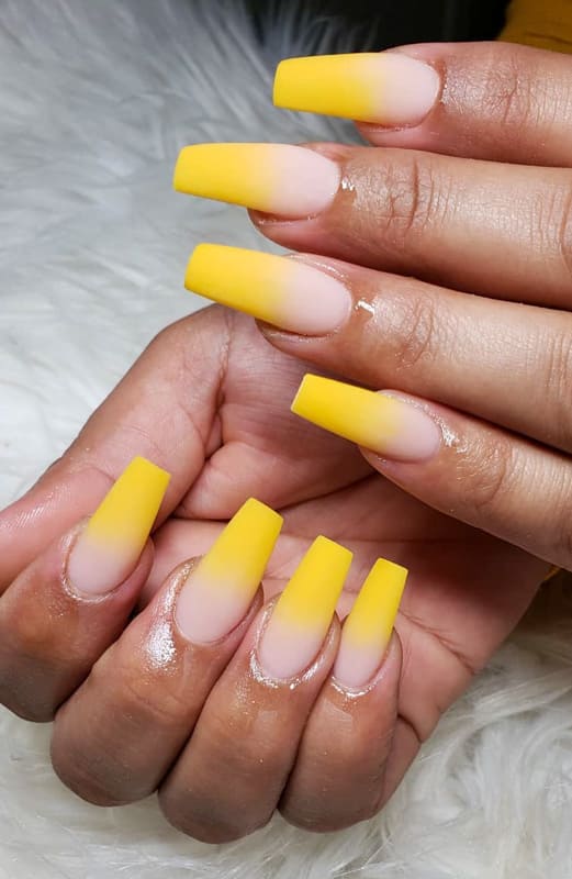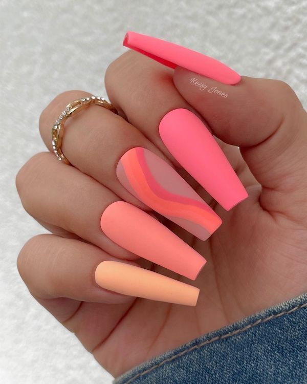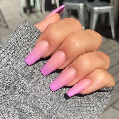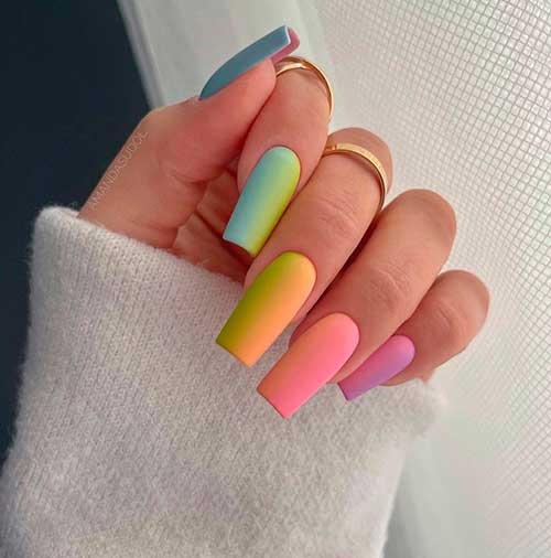 “Velvet” coating involves a lot of variations in 2022. Its combination with gloss, glitter with different prints and patterns with crystals are in vogue. All versions of French and moon manicure are very popular now. Gradient manicure with 2-3 colors like in the picture will be a great matte nail polish idea.