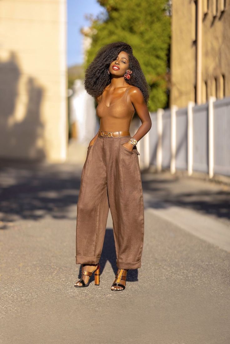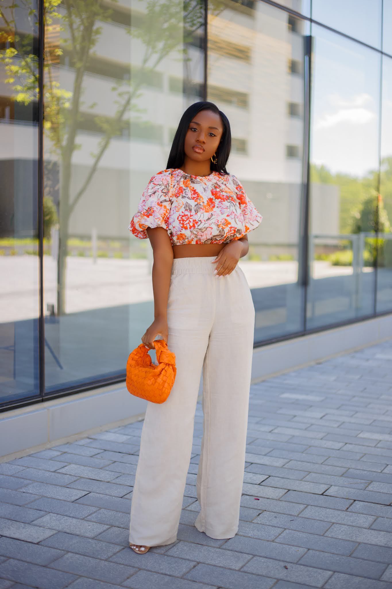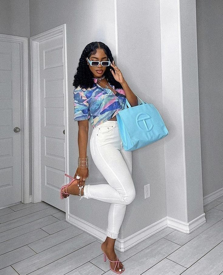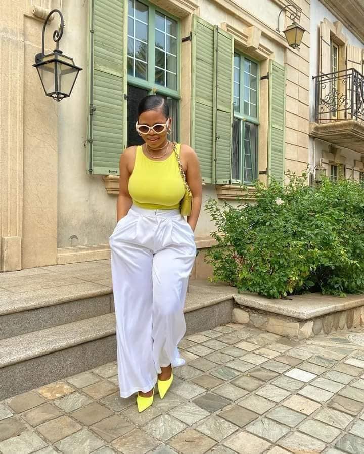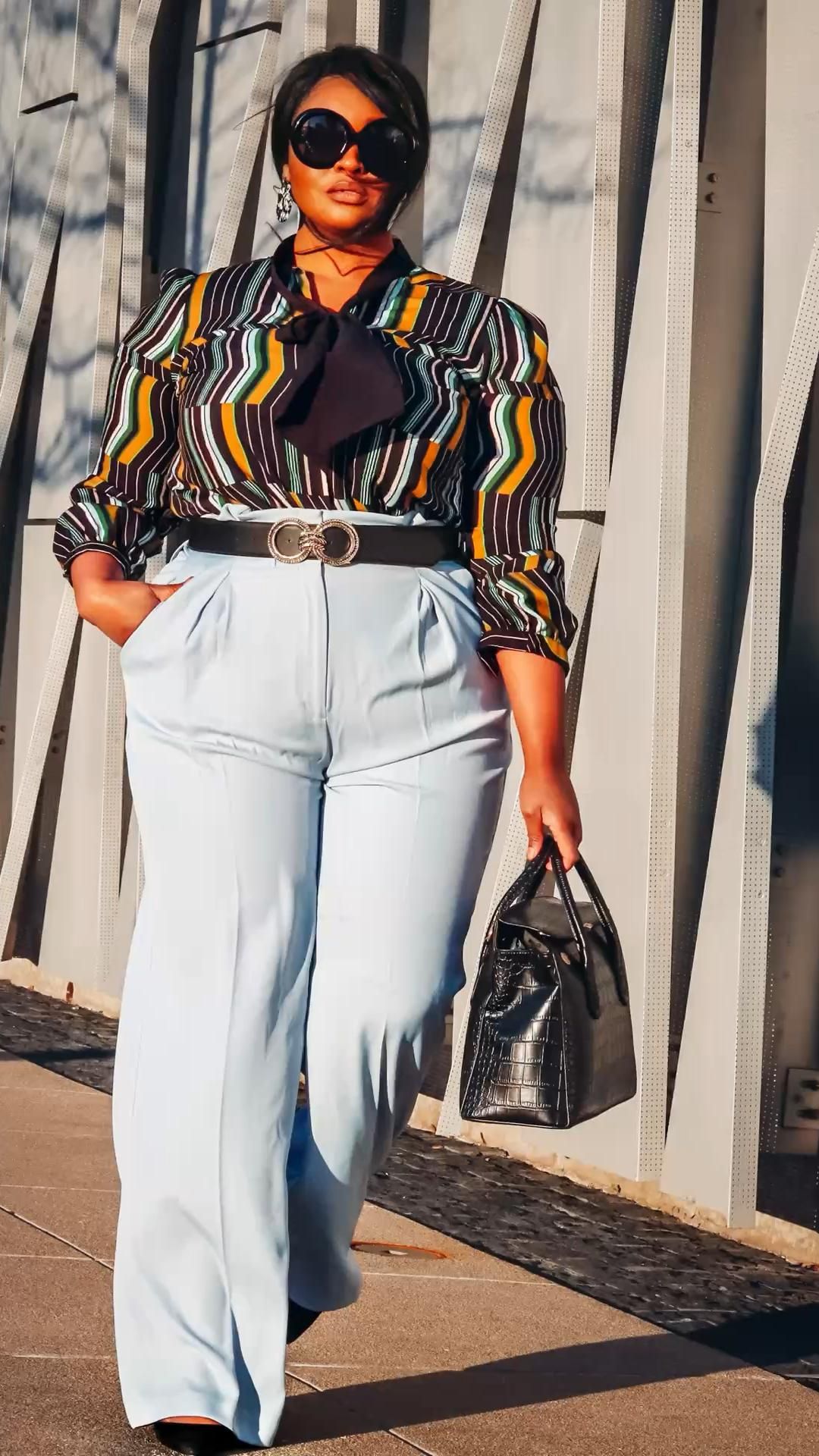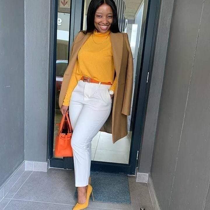 Infuse your white pants outfit with a burst of color by adding a vibrant blouse or a bold printed top. Opt for shades like cobalt blue, coral, or sunny yellow to create a striking contrast against the white pants.