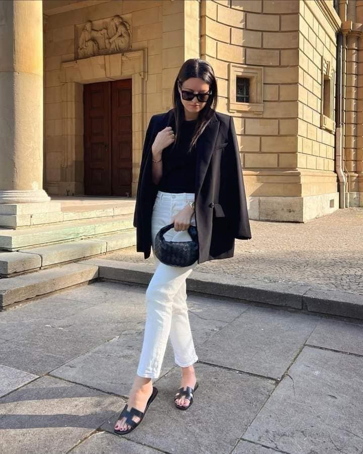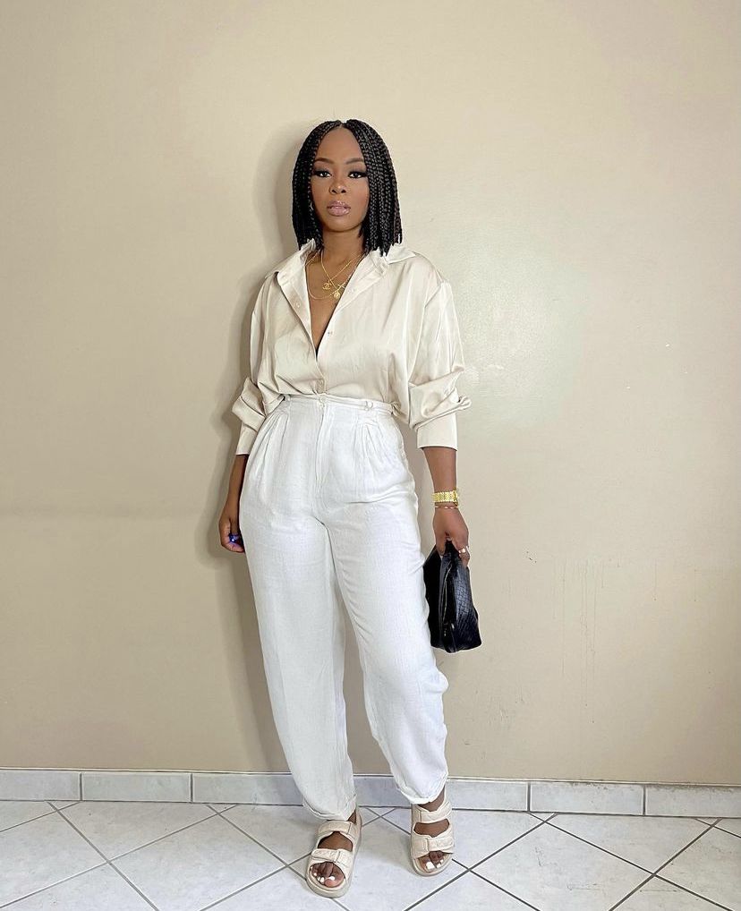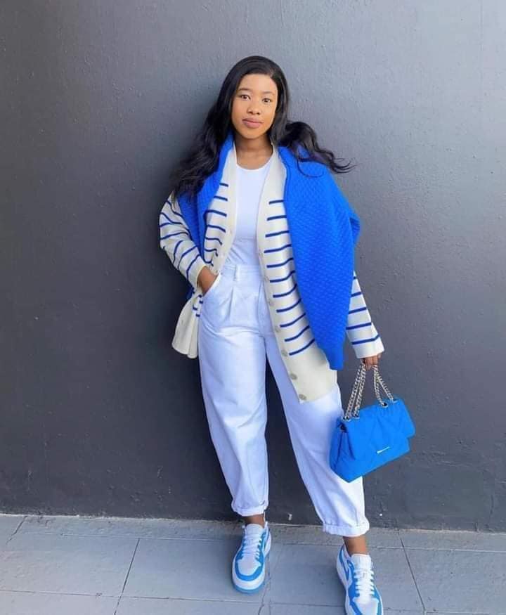 For a laid-back yet stylish vibe, pair your white pants with a loose-fitting striped or patterned top. Complete the look with comfortable sandals or sneakers and a crossbody bag for a chic, everyday outfit.