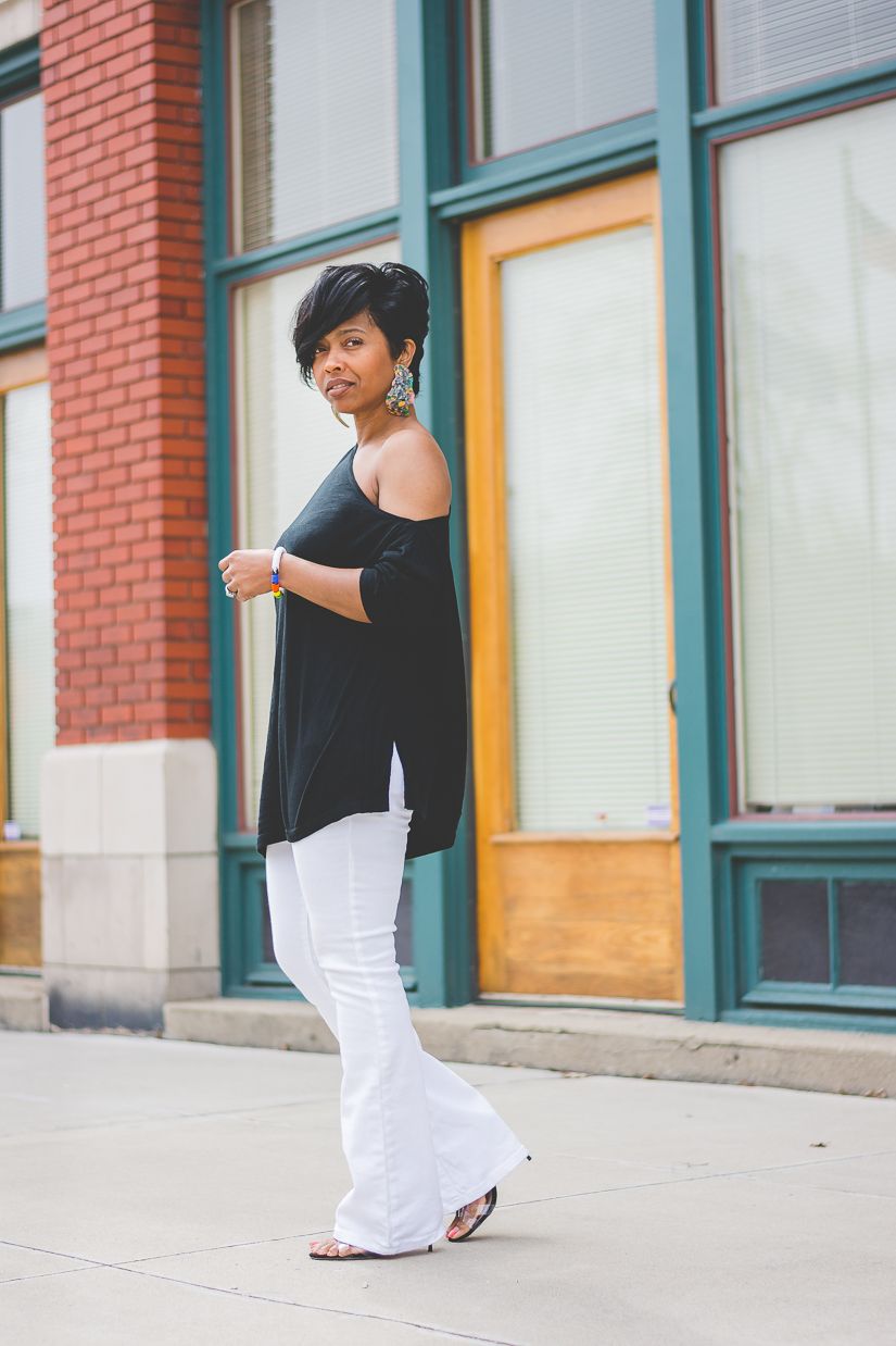 Channel your inner bohemian spirit by pairing your white pants with a flowy, off-the-shoulder blouse and layered accessories such as beaded necklaces and bangles. Complete the boho-chic look with a pair of wedges or embellished sandals.