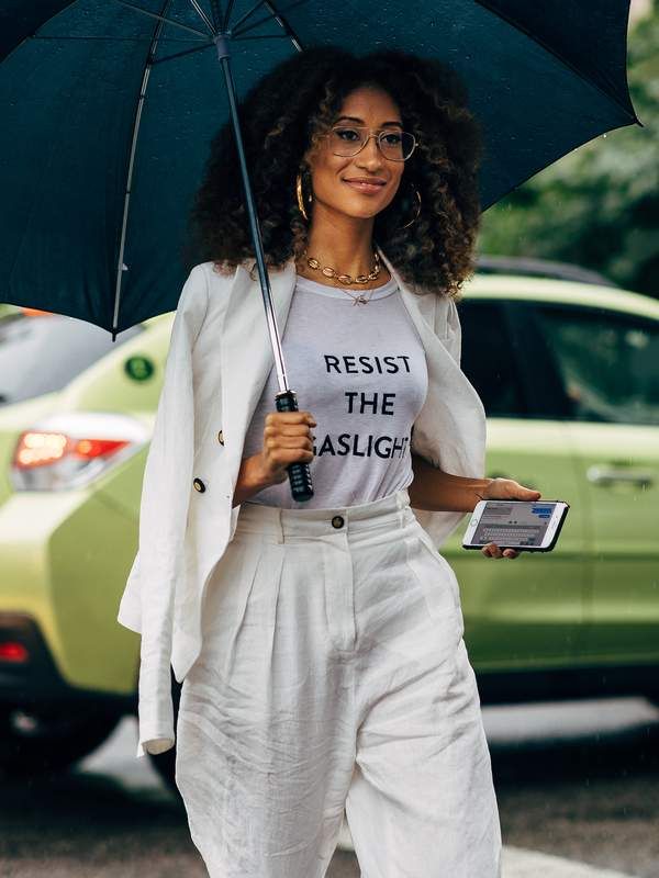 Create a resort-inspired ensemble by teaming your white pants with a breezy, tropical-printed top or a lightweight linen blouse. Add a wide-brimmed hat and oversized sunglasses for a touch of glamour, perfect for a sunny getaway or a brunch by the beach.