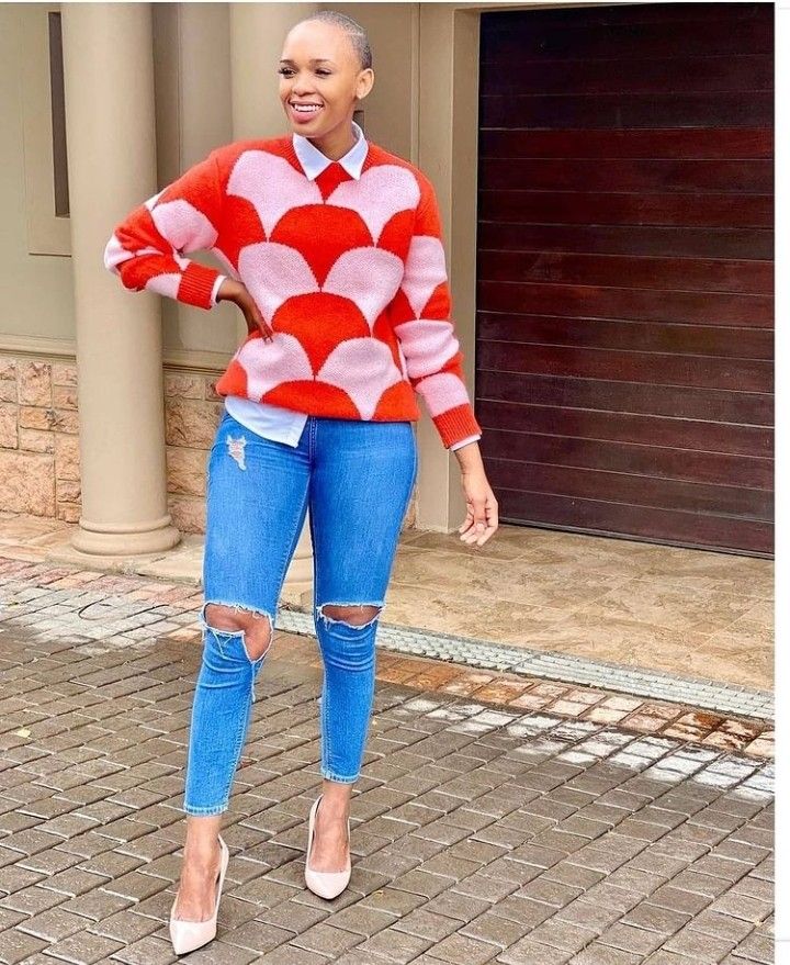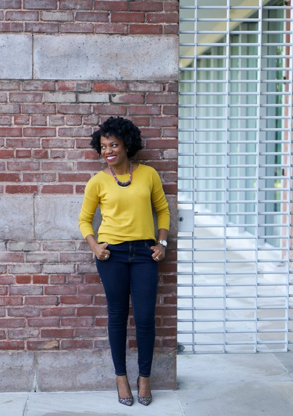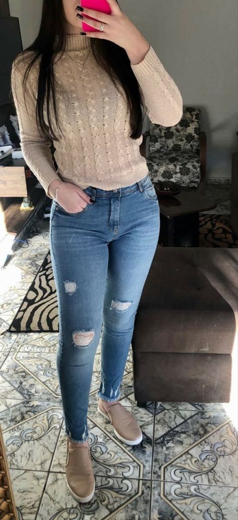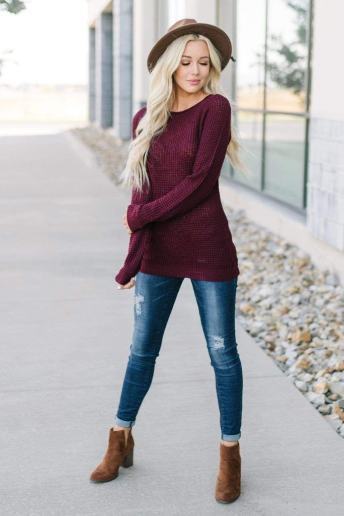 For a cozy yet chic look, pair a chunky knit sweater with jeans. Choose a sweater in a luxe fabric like cashmere or a textured knit, and pair it with slim or straight-leg jeans. Add ankle boots or loafers and accessorize with a statement necklace or earrings to elevate the outfit.