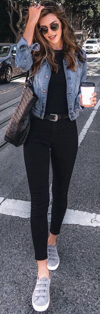 Opt for a denim jumpsuit and layer a denim jacket over it for a chic and coordinated look. Choose a jumpsuit in a tailored silhouette and wear it with a belt to define the waist. Layer a cropped or fitted denim jacket over the jumpsuit and complete the outfit with ankle boots or sandals.