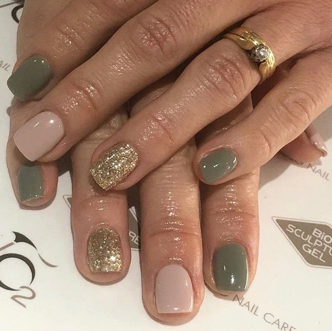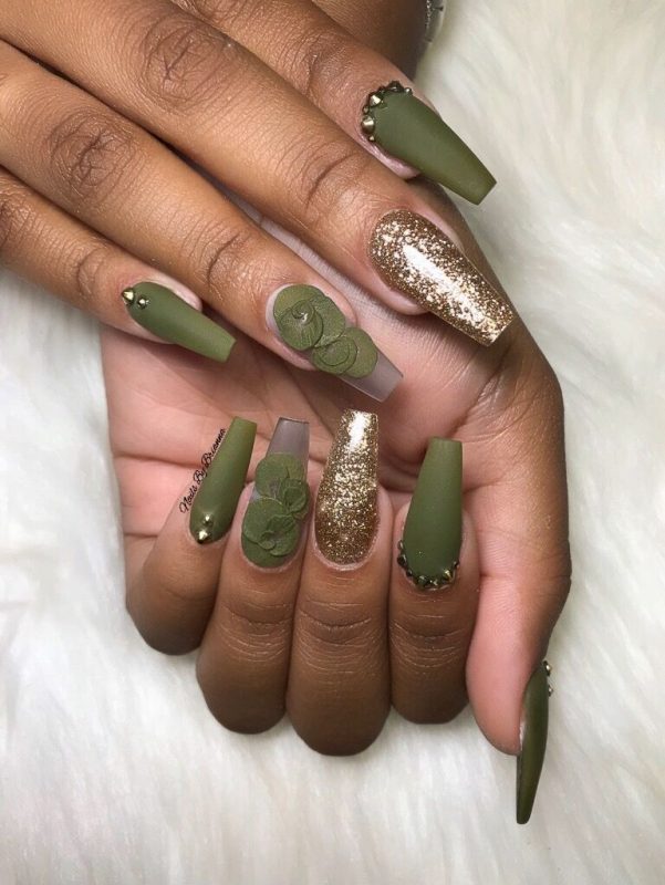 80 Cute Nail Art Design Ideas With Pretty & Creative Details : Matte Green and Glitter