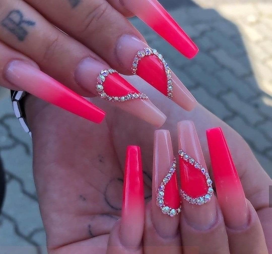 Trendy Winter Nail Colours & Designs : Hot Pink Flame Tip Nails