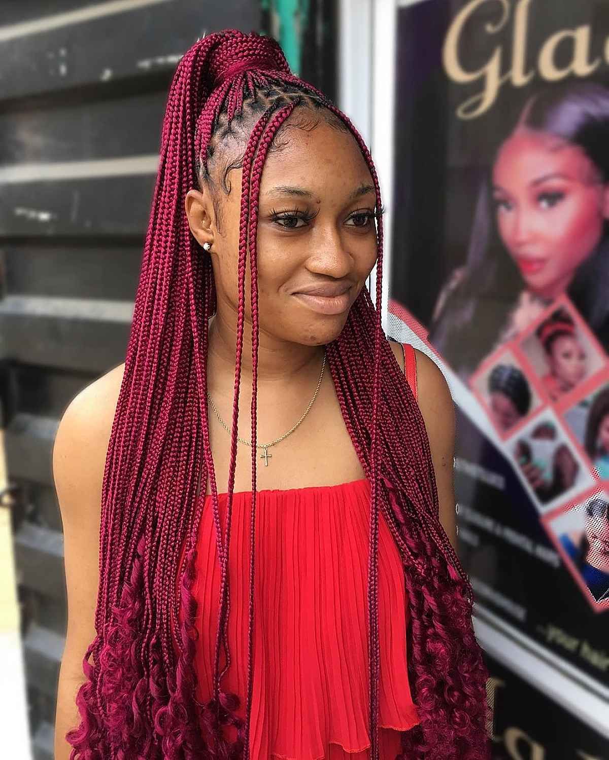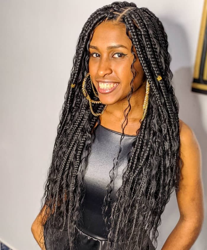 8. Knotless Braids with Curly Ends: Combine knotless braids with curly ends for a playful and textured look. This style adds volume and movement to your braids, creating a dynamic and eye-catching hairstyle.