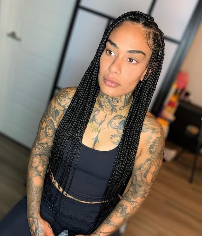 4. Jumbo Knotless Braids: Make a statement with jumbo-sized knotless braids. This bold and voluminous style adds drama and flair to your overall look, allowing you to showcase your unique style and personality.