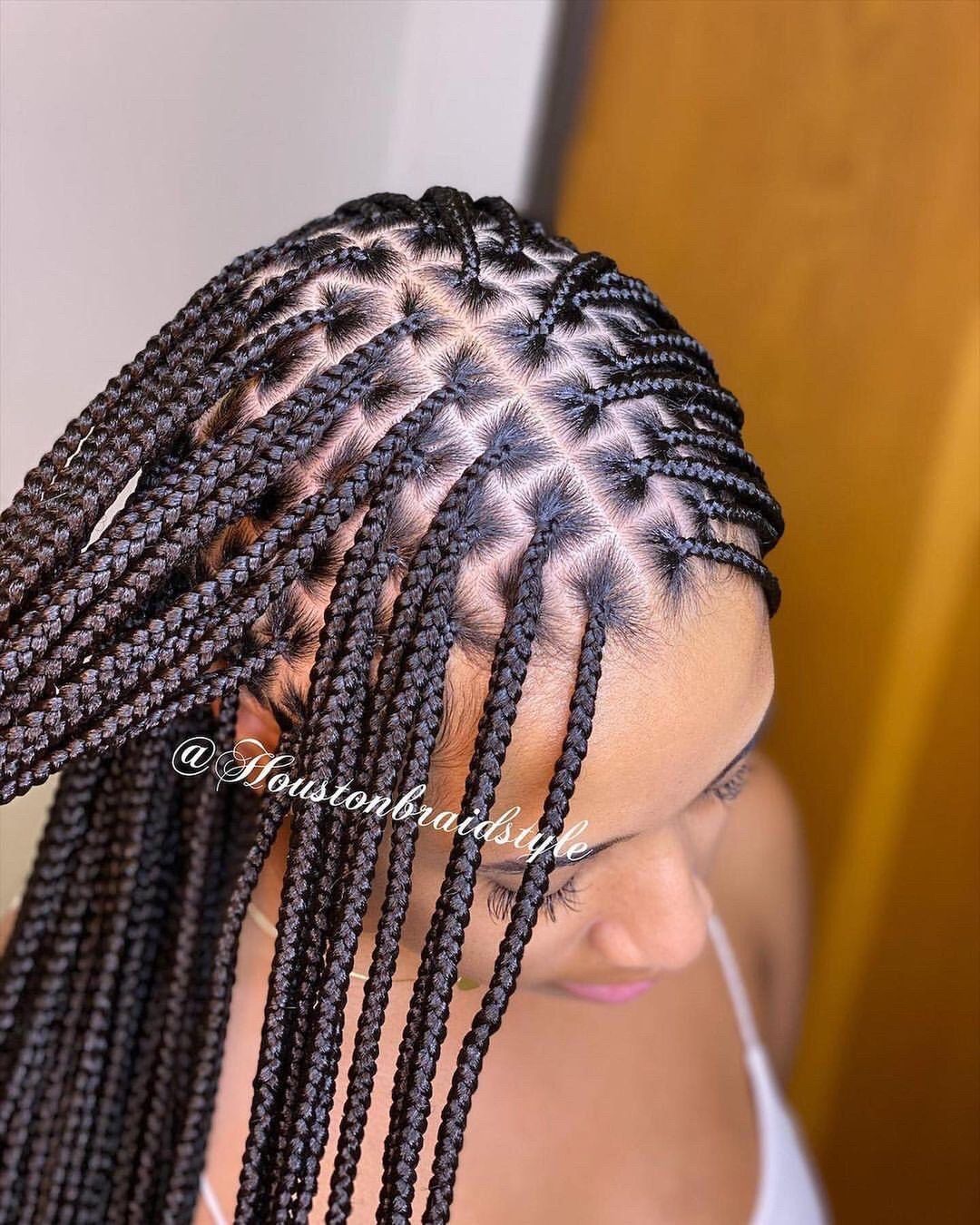 11. Triangle Parting Knotless Braids: Experiment with triangle partings to add a geometric and trendy twist to your knotless braids. This style creates visual interest and can be customized to your preference.