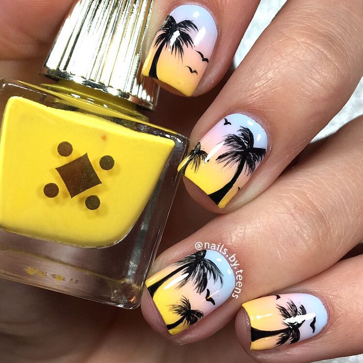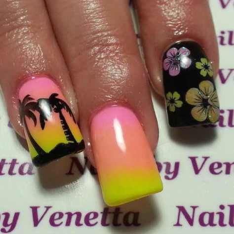 2. Tropical vibes: Try palm tree or hibiscus flower designs in shades of green, pink, and yellow. You can also incorporate ombre effects or gradient colors.
