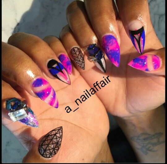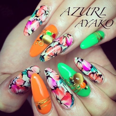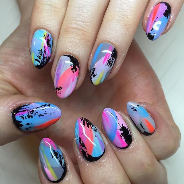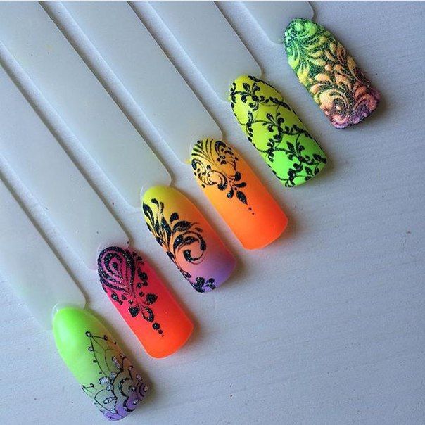 1. Bright and bold: Go for neon shades like hot pink, lime green, and electric blue. Add some glitter or rhinestones for an extra pop.