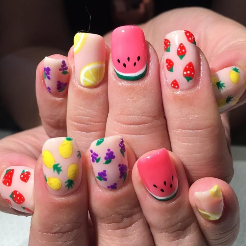 4. Fruit-inspired: Watermelon, strawberry, and pineapple designs are all great options for a cute and playful summer look.