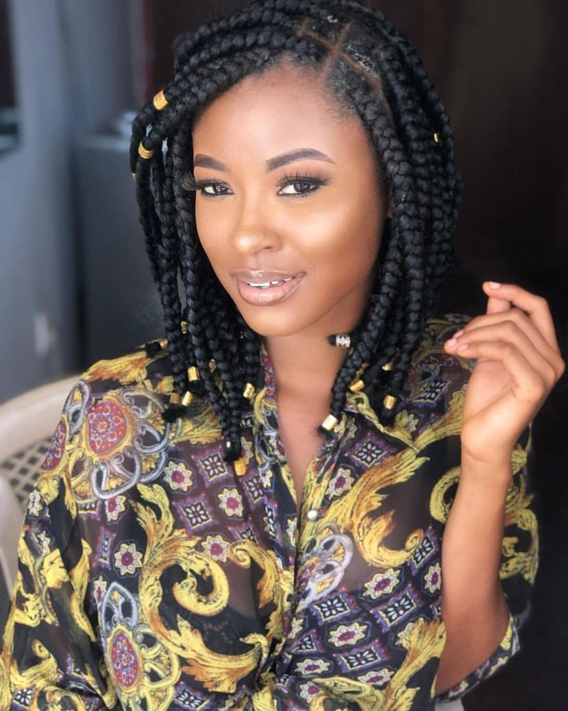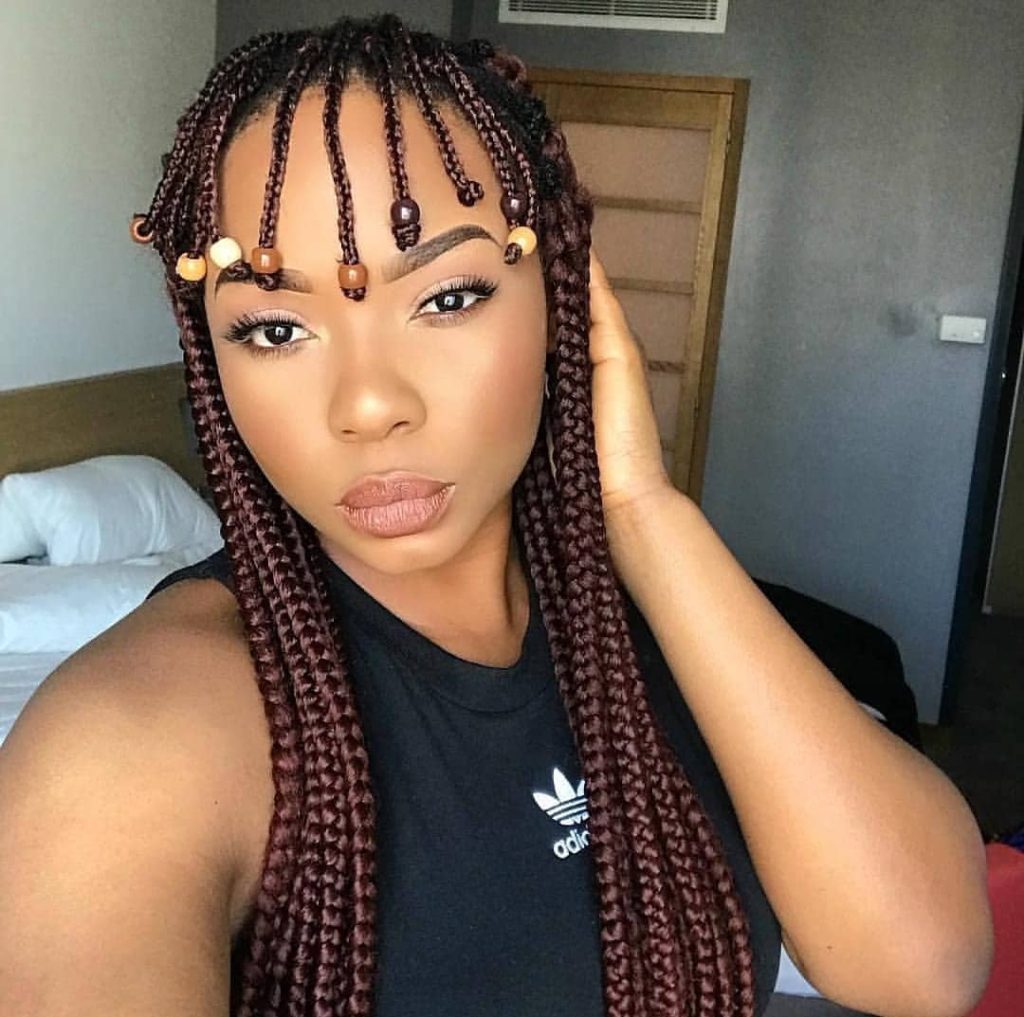 10. Box Braids with Beaded Fringe: Incorporate a fringe of beads at the front of your box braids. This playful yet sophisticated detail draws attention to your face and adds a luxurious touch.