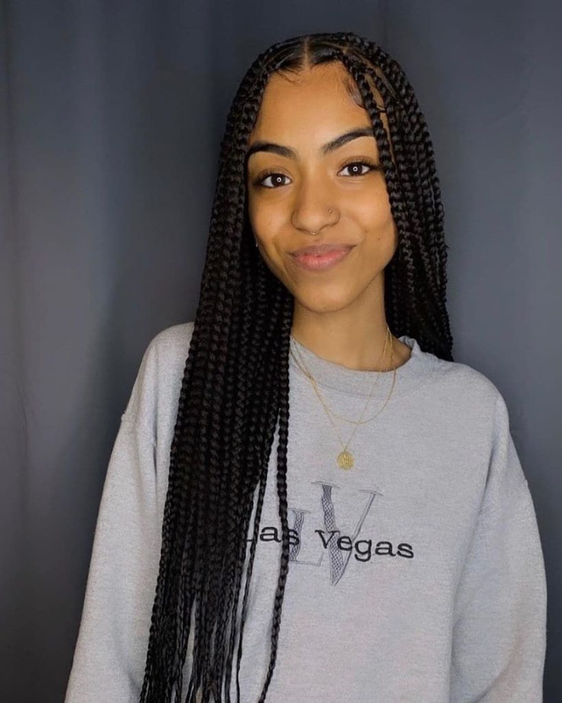 12. Extra-Long Box Braids: For an ultra-luxurious appearance, opt for extra-long box braids that cascade down your back. These braids offer an ethereal and majestic vibe.