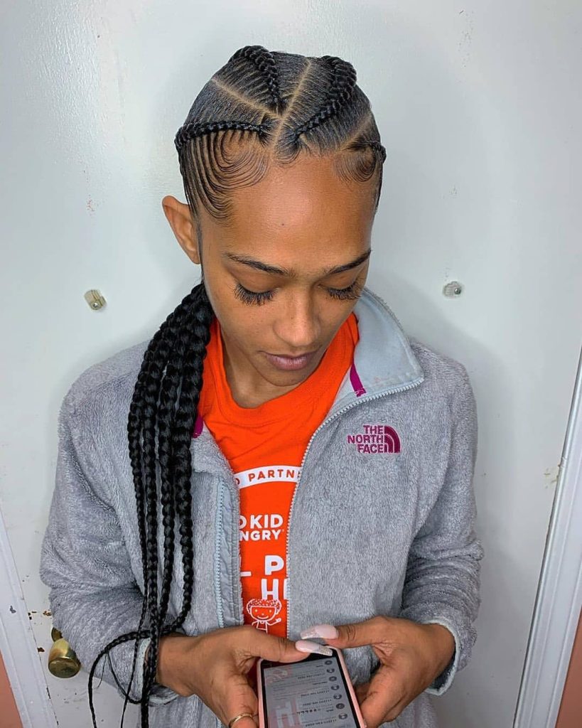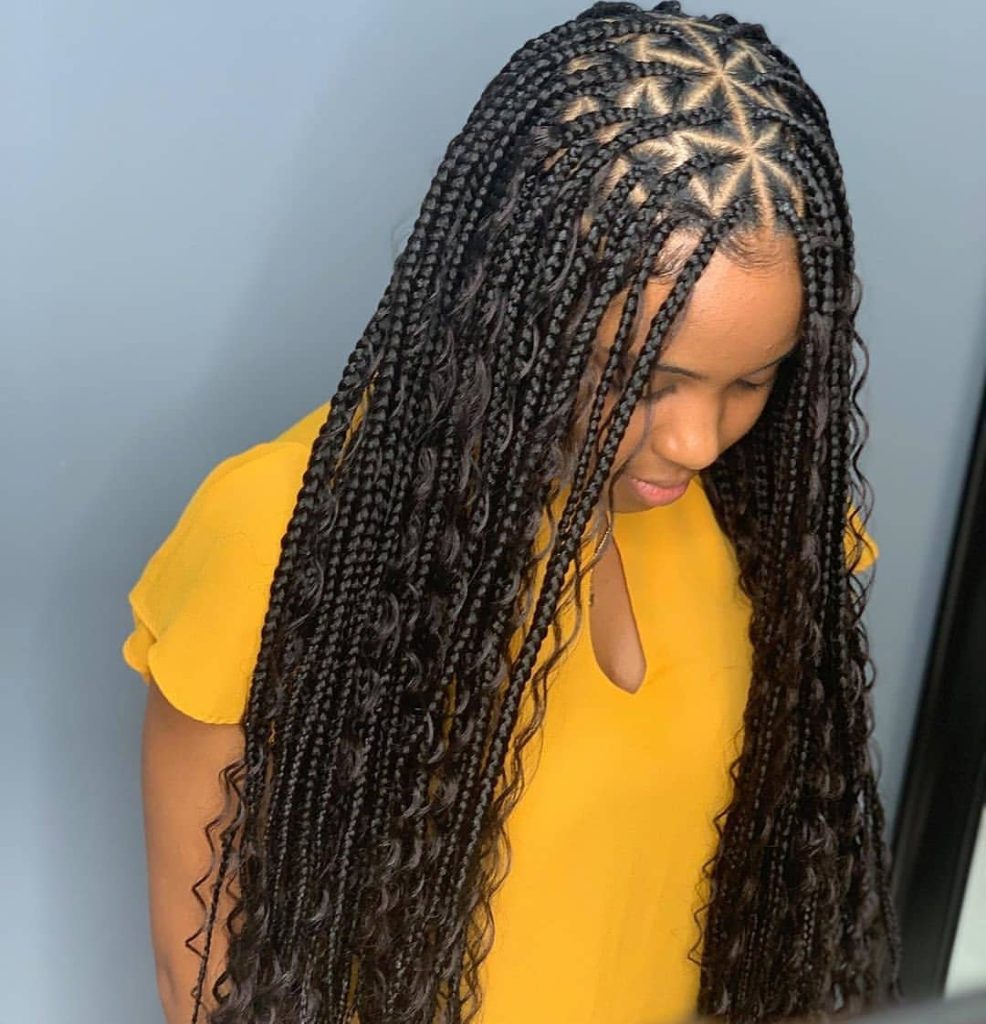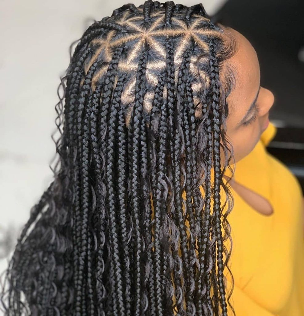 4. Box Braids with Intricate Parting: Achieve a luxurious look with box braids that feature intricate parting designs. Geometric patterns, zigzags, or even your initials can be created to make your braids truly unique.