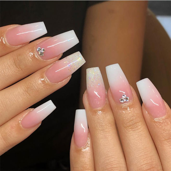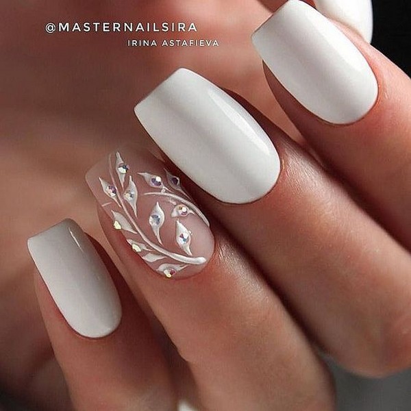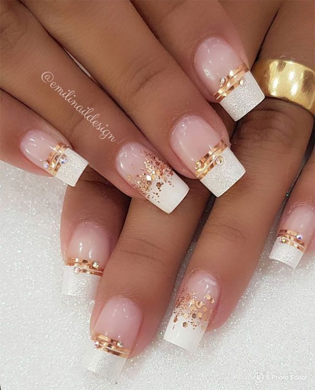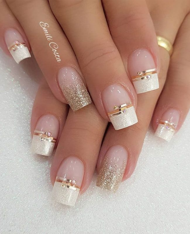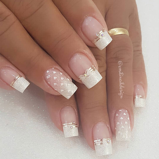 There are also plenty of other bridal nail designs to try that work perfectly for your big day, whether you want to add an ombré effect to your nails, try one of the many modern variations of a French manicure or add abstract lines and shapes.