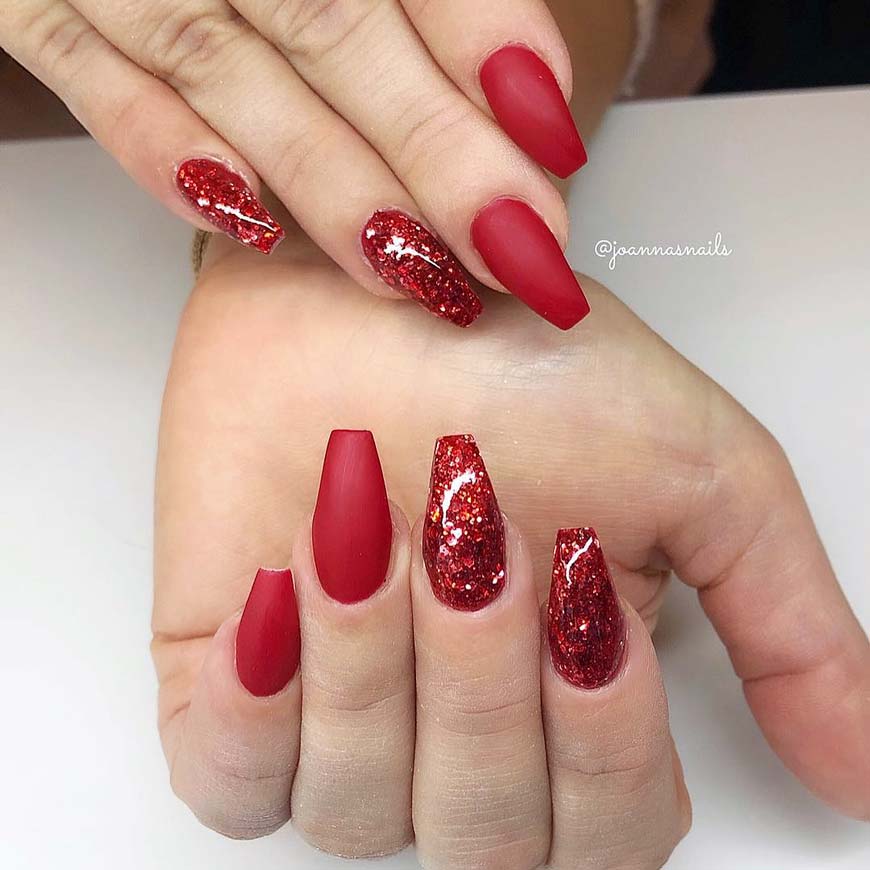 2-Matte-Red-and-Glitter-Short-Coffin-Nails