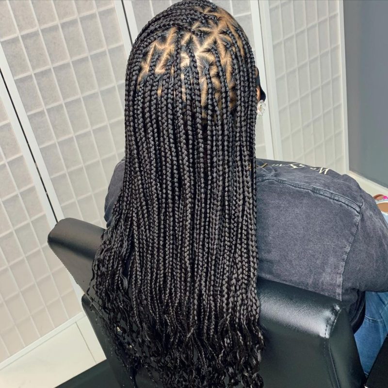 4. Box Braids: Box braids are a classic and timeless choice that never goes out of style. These braids are created by sectioning the hair into small square or rectangular parts and braiding them from the root to the ends. Box braids can be worn in various lengths and thicknesses, allowing for versatility and creativity.