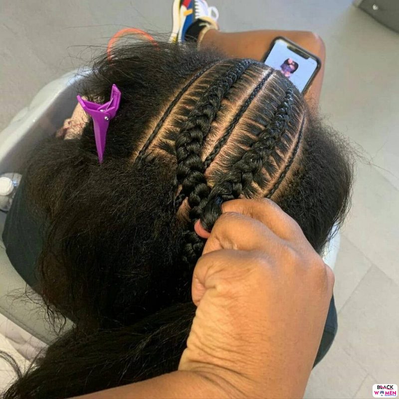 5. Feed-In Braids: Feed-in braids are a technique where additional hair is gradually added to the natural hair as the braid progresses. This method creates a seamless and natural look, with the braids appearing to grow directly from the scalp. Feed-in braids offer a neat and polished aesthetic that is perfect for both casual and formal occasions.