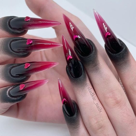 - Studded Glam: Black nails with red rhinestones.