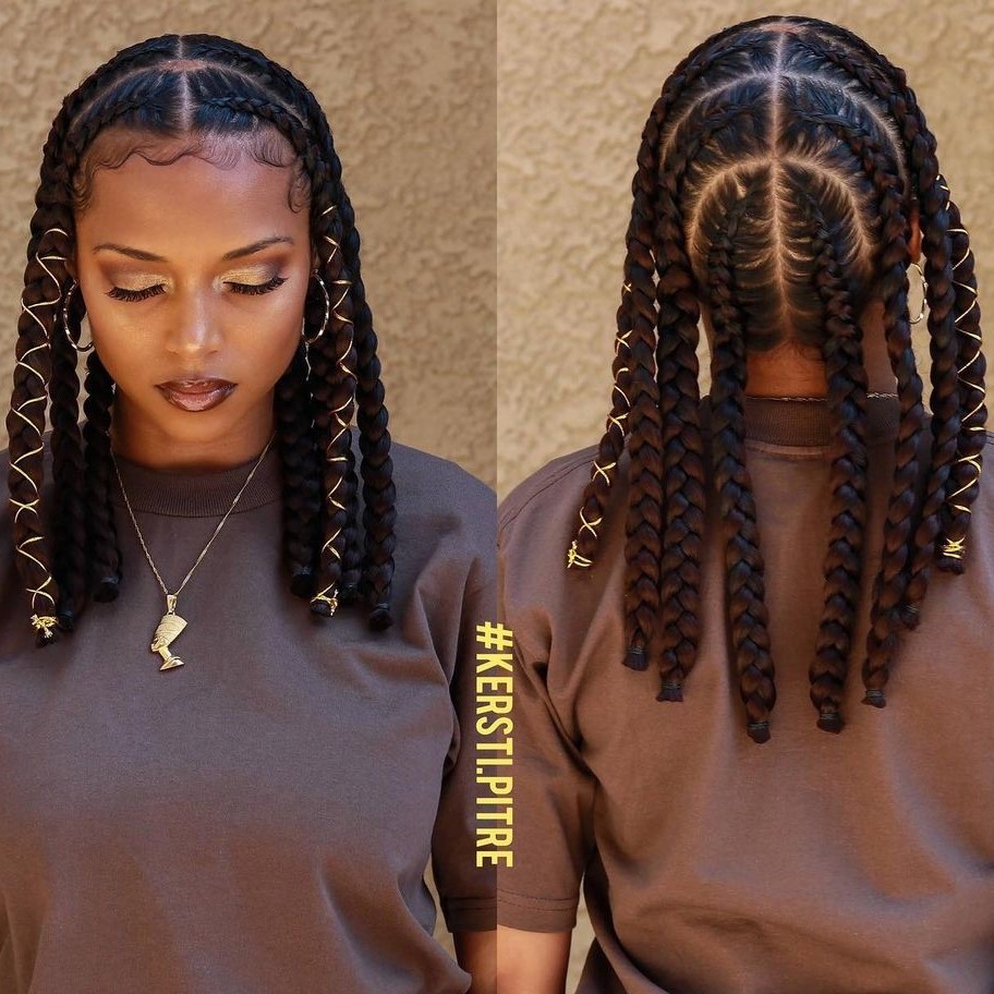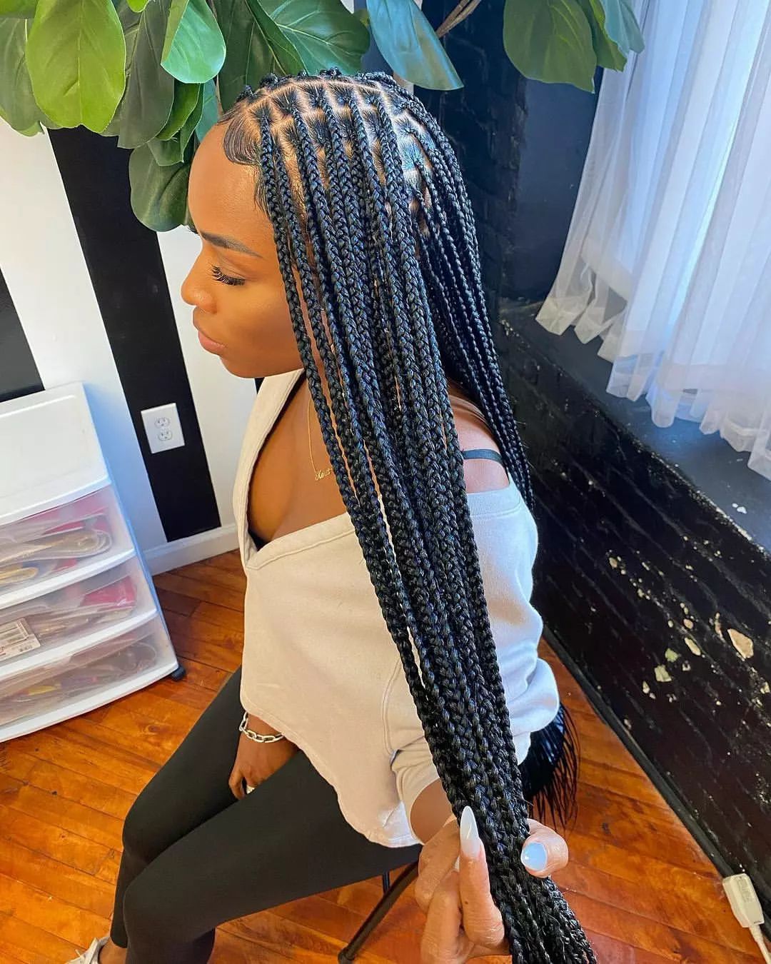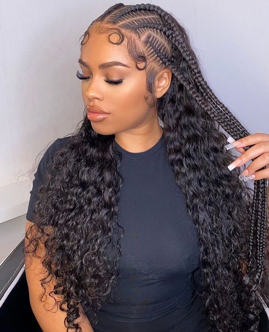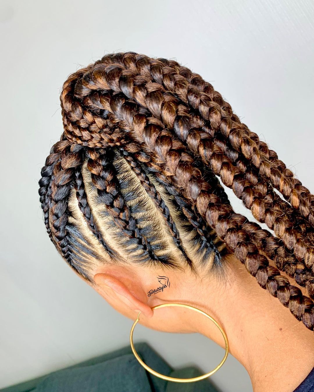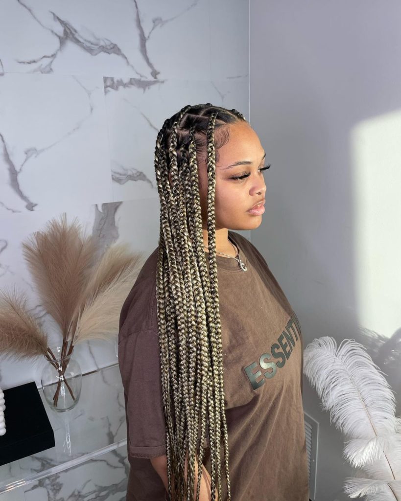 Combine the best of both worlds by intertwining knotless braids with boxer braids. This chic and edgy fusion offers a modern take on a classic style, ideal for casual outings and music festivals.