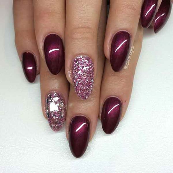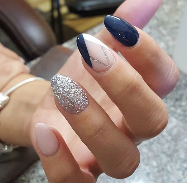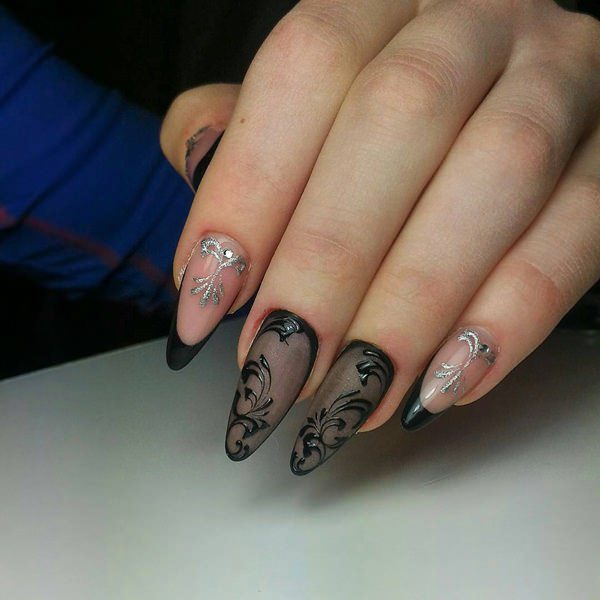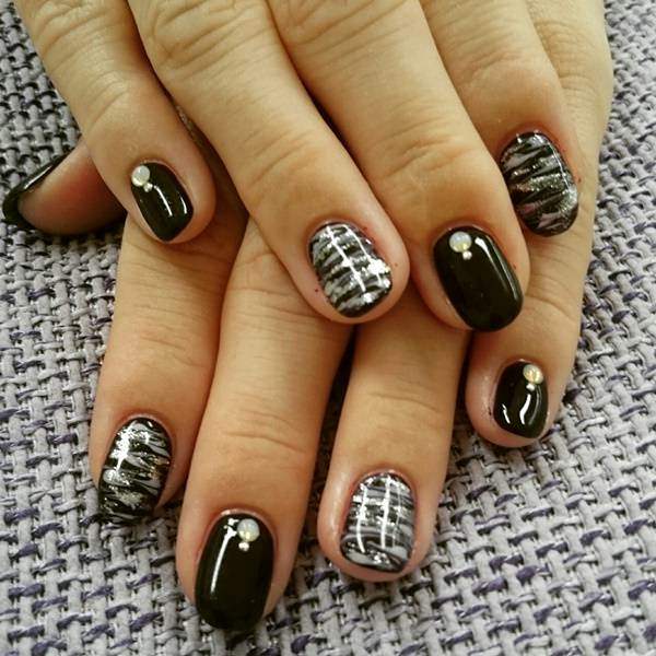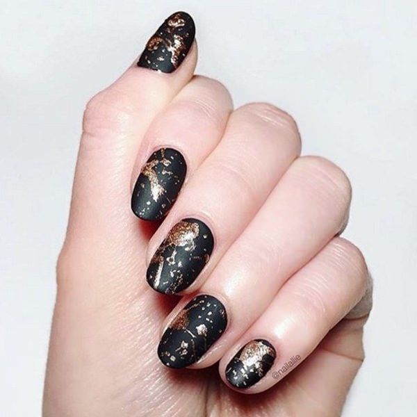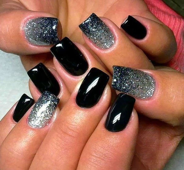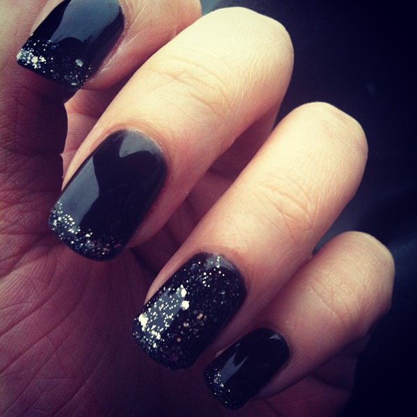 We love these dark and mysterious nails because they are classy with a touch of sparkle.