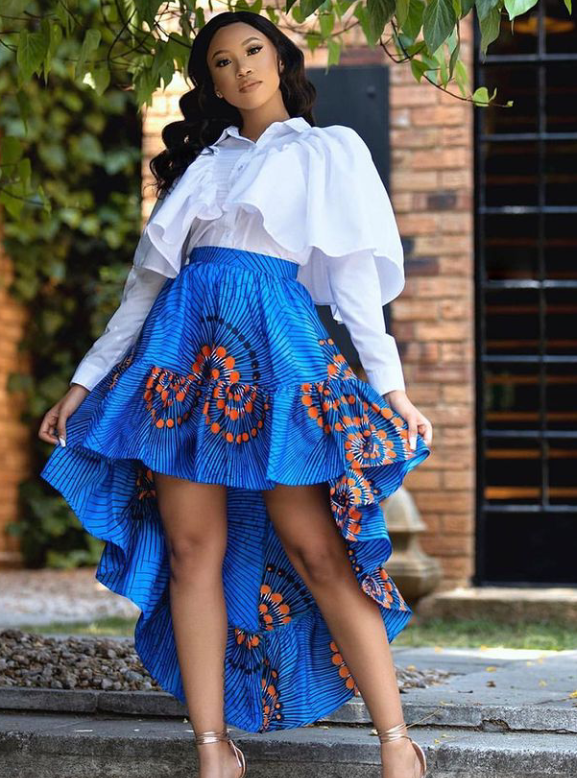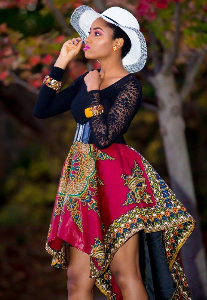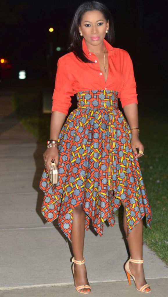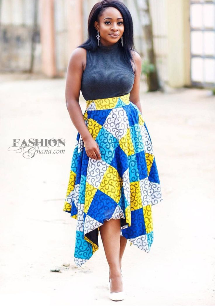 A skirt with an uneven hemline gives a modern twist to the traditional Ankara prints. This design offers movement and an edgy look.