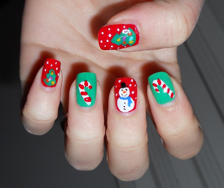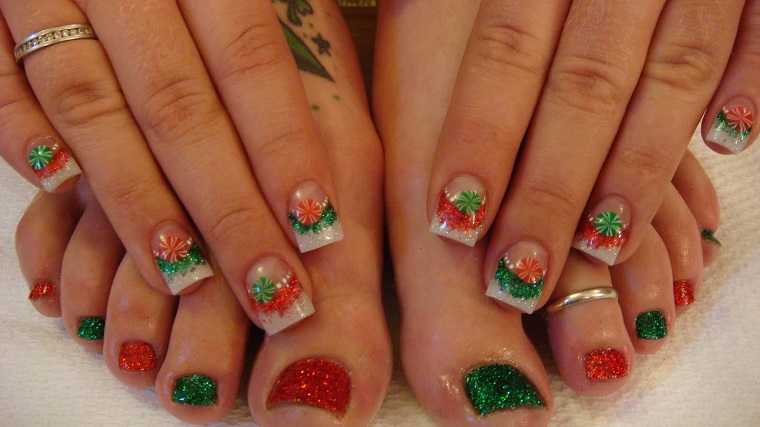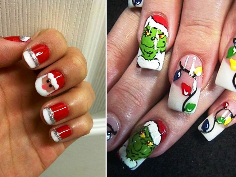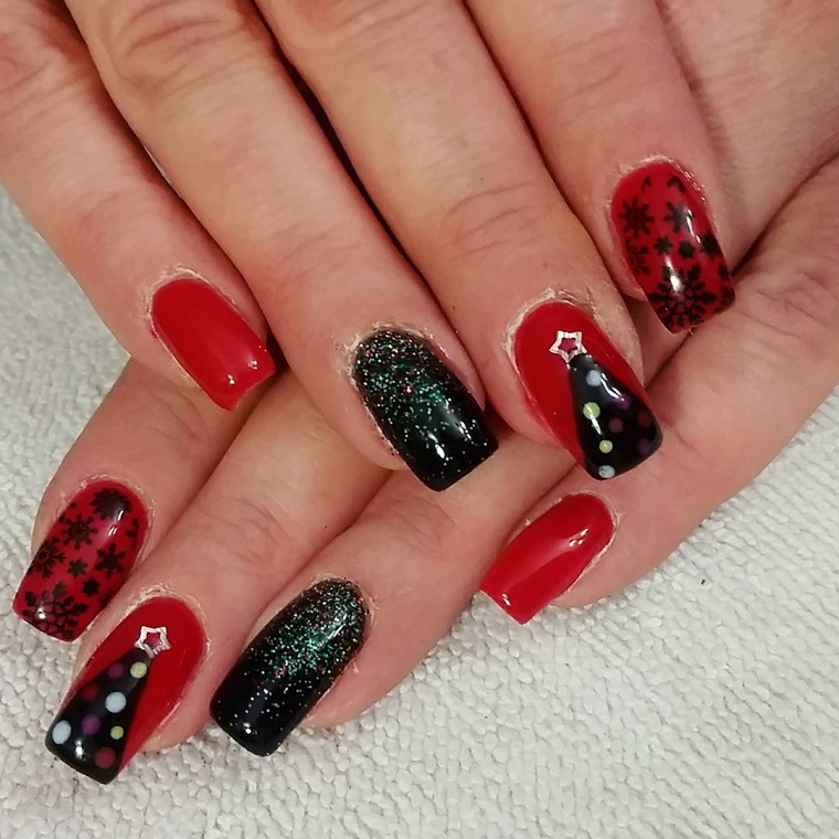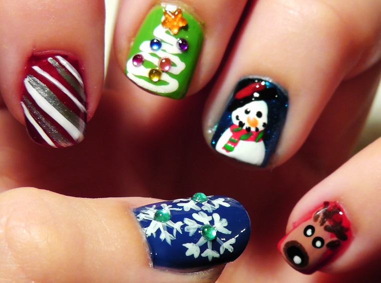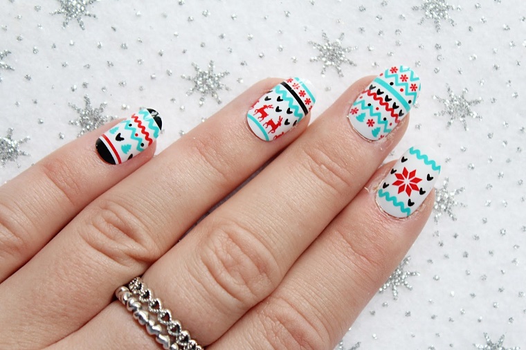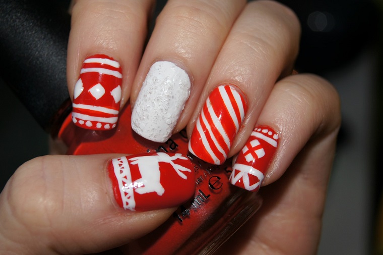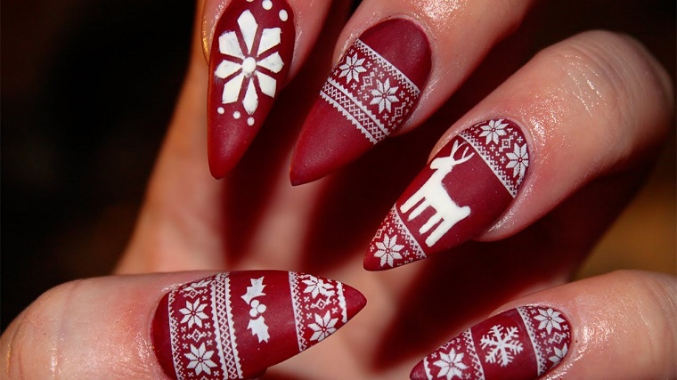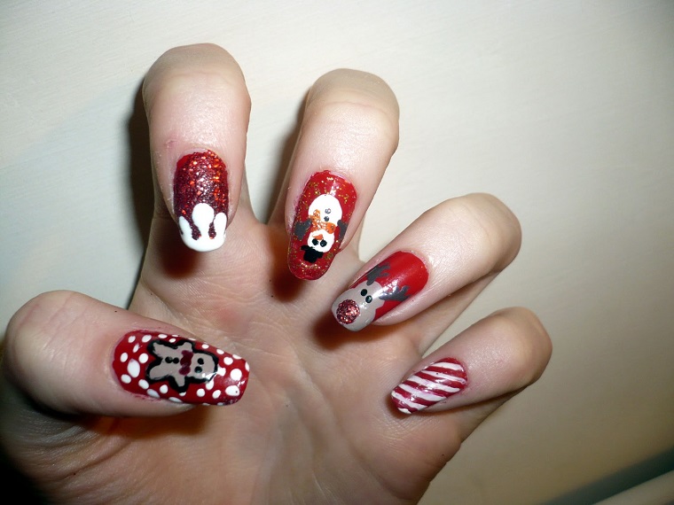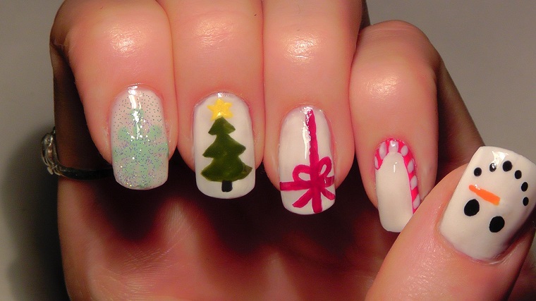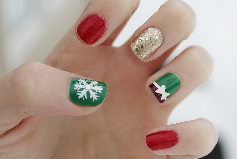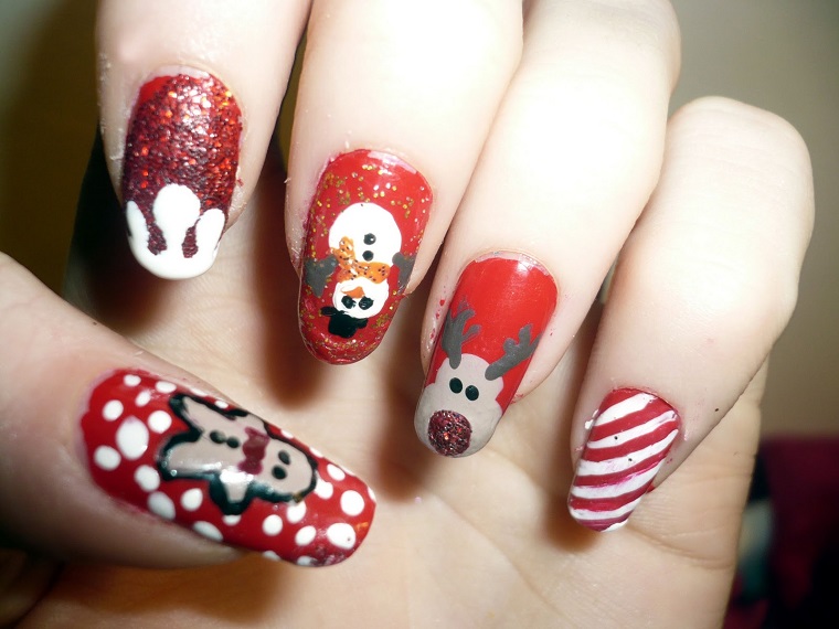 Here you will find a hundred ideas for truly original, fun, witty but also chic and elegant, simple and sober Christmas nails to make your Christmas parties unique, even in this respect. The ideas that we have carefully selected are many and different so as to be able to meet all tastes and all the various needs. You will find colorful and pretty ideas with reindeer, Santa Claus, candies, but also simpler proposals with snowflakes, French manicure with various kinds of glitter and also “plain” proposals obviously in the typical colors of Christmas. If you love to decorate your nails, the Christmas holidays are just the best time to indulge yourself with colorful and imaginative manicures. As for the most popular colors for this very special period, first of all we mention the red that always gives an elegant appearance, the fir green, passing through gold, silver, white, blue and black.