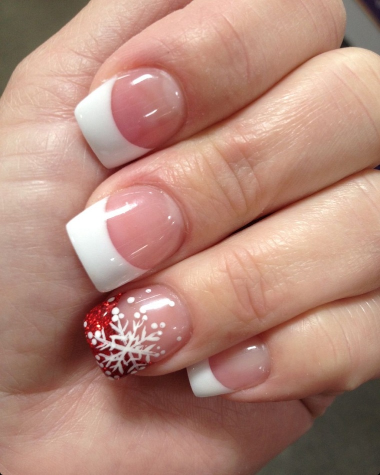 Another option is to apply nail stickers, so as to obtain a perfect and elegant result. Now let’s see in detail some of the trendiest solutions starting from simple red Christmas nails with small decorations, or with a sprinkle of glitter on a single nail. From the lightest and brightest reds to the darkest ones, it is a perfect shade for Christmas even for nails, The glitter French manicure is also very effective: here you will find some of the most interesting interpretations, both for long nails both for shorter ones. For those who want to create more sober and sophisticated Christmas nails, it is possible to focus on light colors of nail polish, pink in particular, and add some sparkling details.