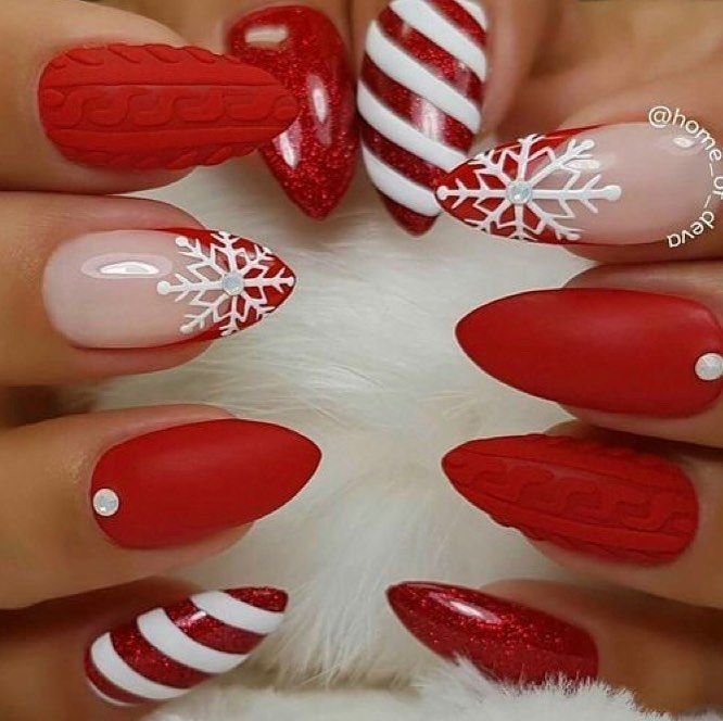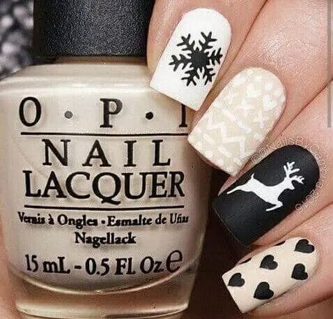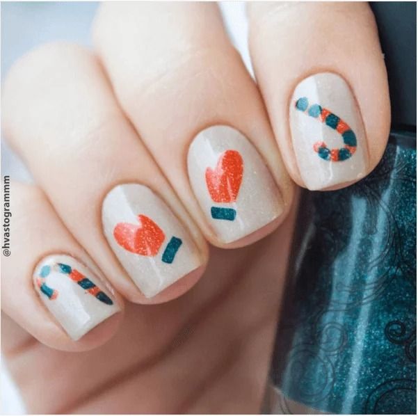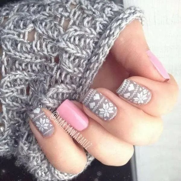 Fun-loving cute Christmas nail designs like Santas and penguins appeal to the kid in all of us. Others are more adult and sophisticated, like white-on-white cable knits and simple silhouettes. The grown-up look of white on pastel is especially current and fashionable.