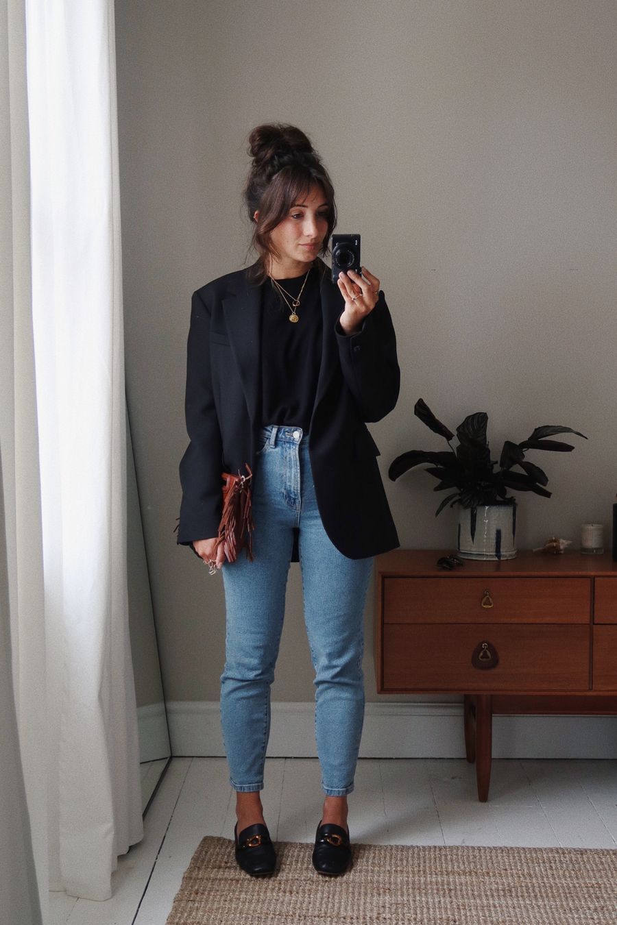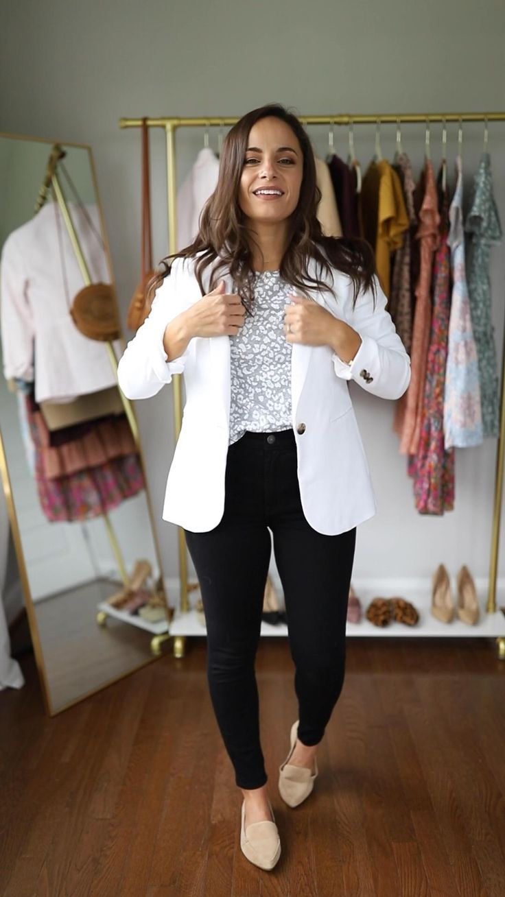 3. Effortlessly Cool: Choose an oversized or boyfriend blazer and pair it with high-waisted skinny jeans. Roll up the sleeves of the blazer for a relaxed feel and add a graphic t-shirt or a cropped top. Complete the look with ankle boots or chunky sneakers for a cool and trendy outfit.