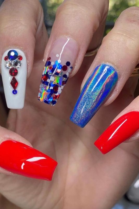 What’s great about blue nail polish is it looks great on long or short nails and you can create a ton of fun designs with it if you want to make your nails stand out even more. Plus, blue nails are super trendy right now.