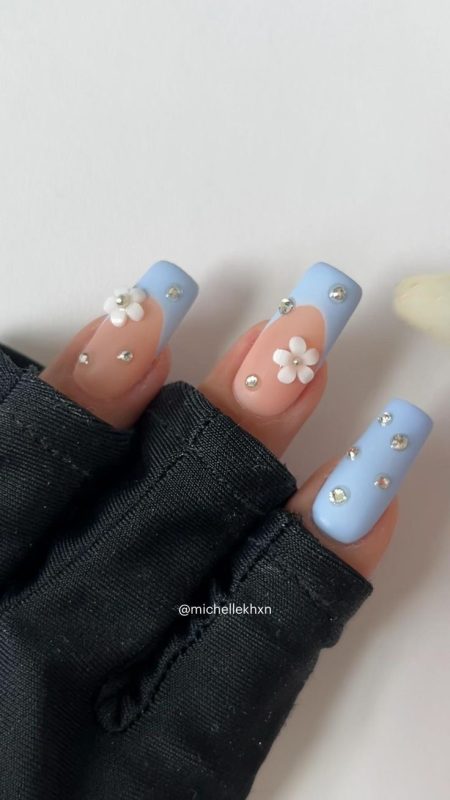 Clear nails are a new style trend – one of the most popular clear nail colors is often blue, as it looks gorgeous when combined with the interesting opaque style.