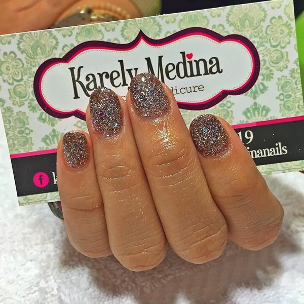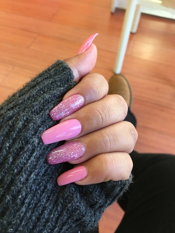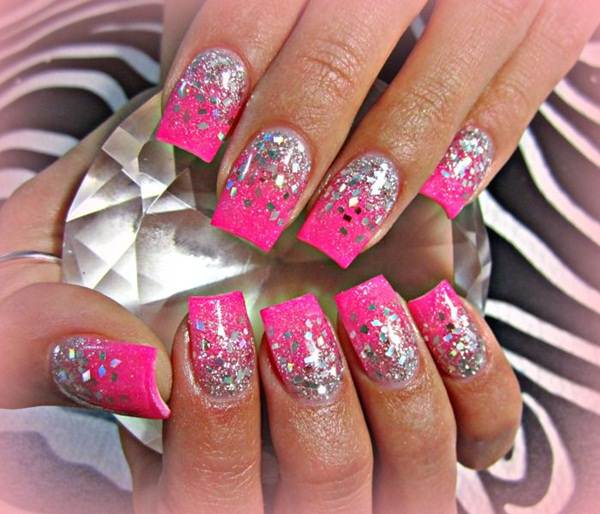 An ultimate “girly” design as some would call it. This bright pink done with differing sizes of sparkles is sure to catch looks your way.