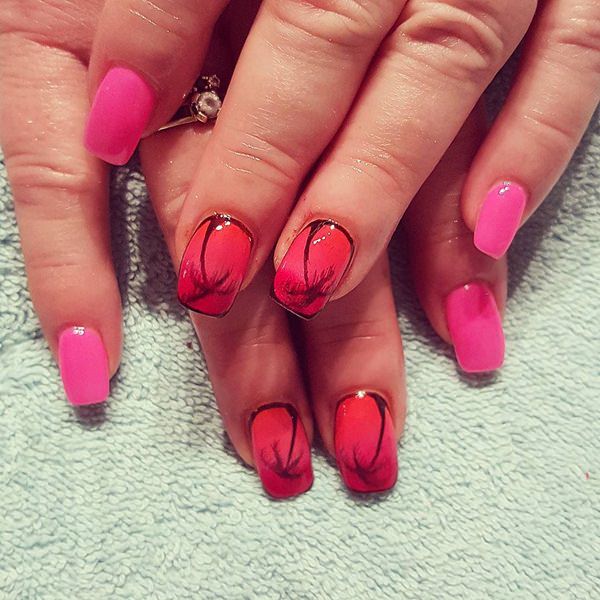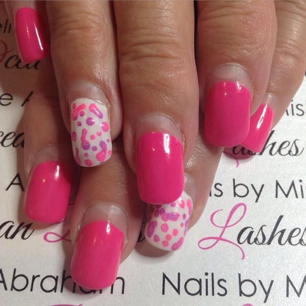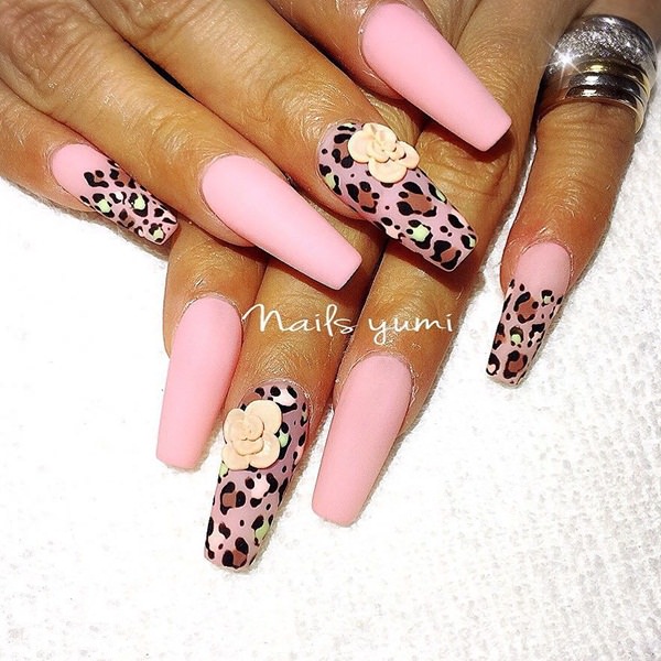 If you’ve got a wild side and want to flaunt it, leopard print in pink is always fashionable. Do this design on long nails to fit a few flowering trinkets atop a nail or two.