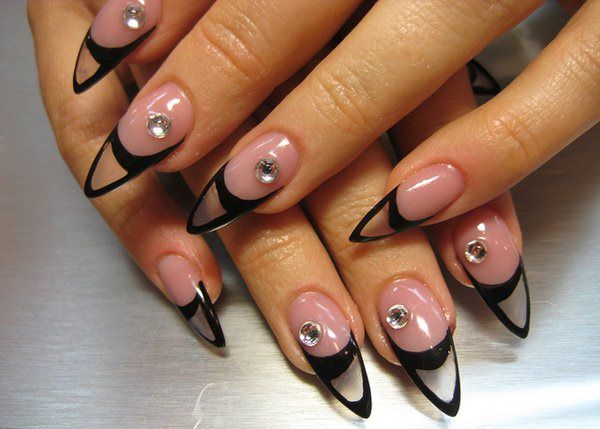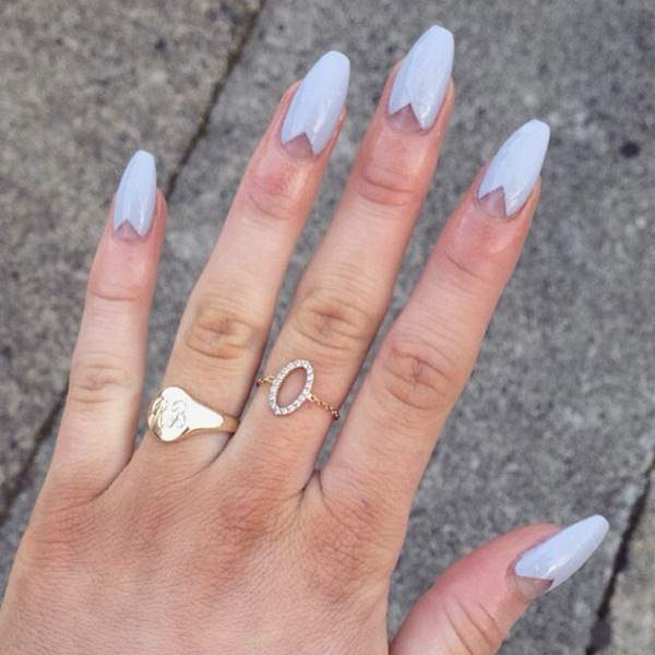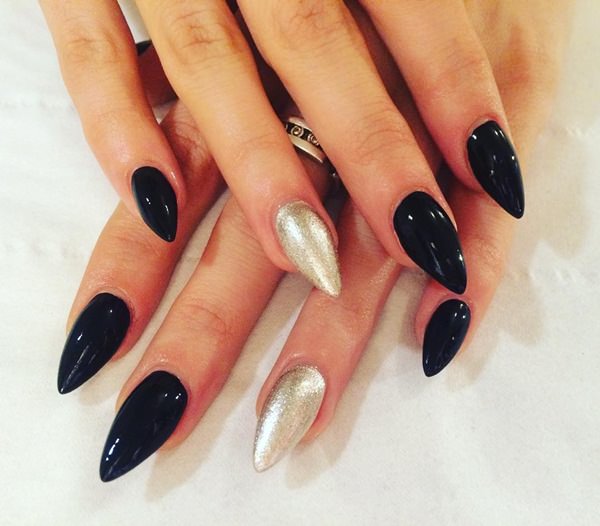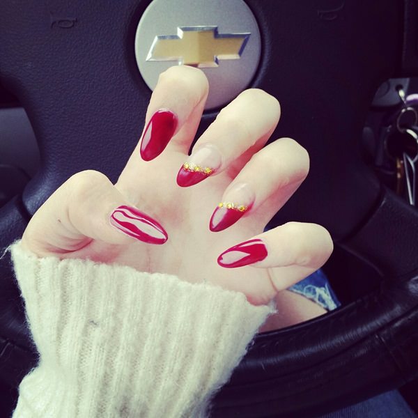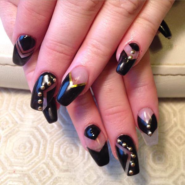 Wow! These nails are modern, chic, and not for the faint of heart. If you’re a glamor goddess, you’ll love long designs with stiletto tips like this.