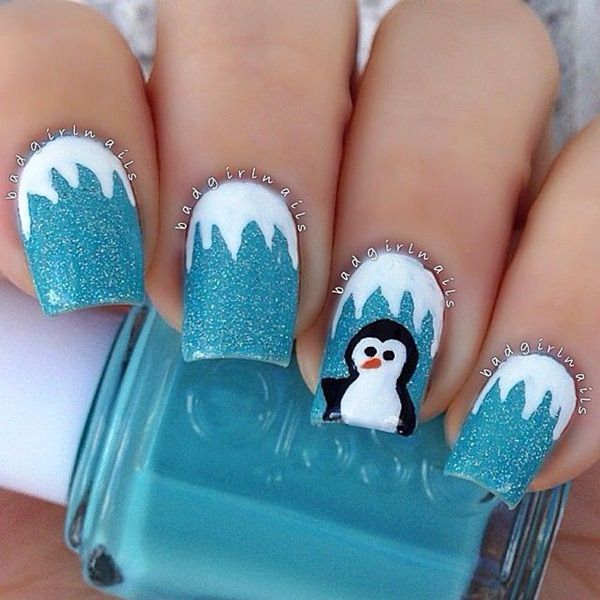 Lighten up the mood during the holidays with a cute design featuring frosted fingers and a cute little penguin buddy that’s sure to put a smile on your face.