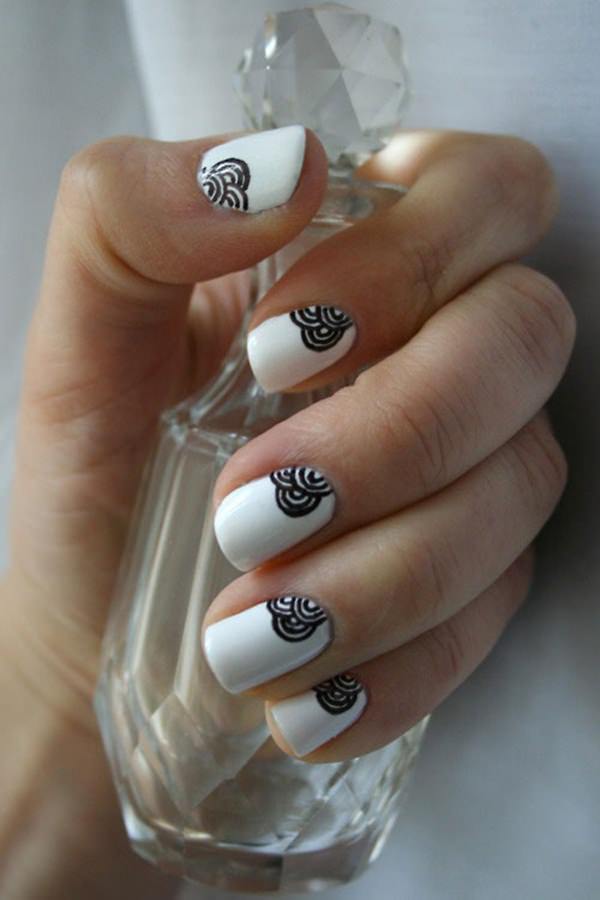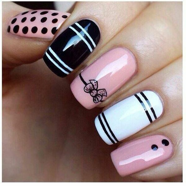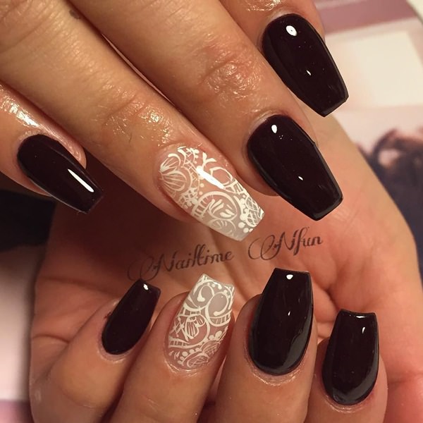 Grey and white are great colors that go well with black, so try using them on a nail or two when you’re going with black nail designs.