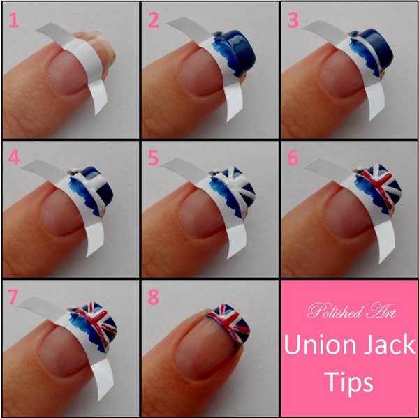 We thought we’d throw in a simple visual tutorial on how to create a unique French-tipped manicure in case you’re a do-it-yourselfer. As you can see, all you need is a little tape to place on your finger and voila, you’re able to create that perfect line separating your natural nail from the specialized tip. Feel free to experiment with the shape of the tape, giving your nail different shapes to work with.