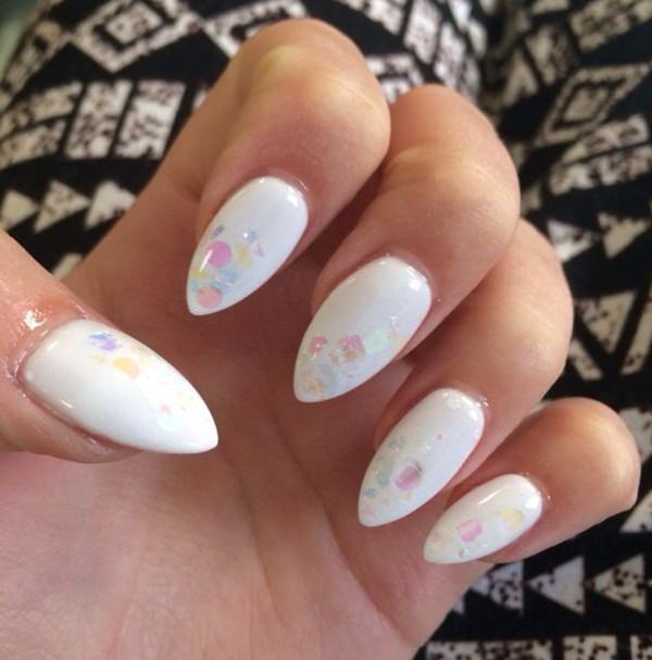 These nails may be a simple white, but the added translucent pastel sparkles give them added depth which would otherwise be dull!