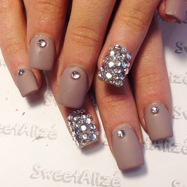 Some of us prefer matte finishes rather than shimmery. But you can always add a touch of sparkle by adding gems to a single finger on each hand.