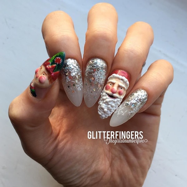 ‘Tis the season to be jolly! If you’re a Christmas lover, then frost up your fingertips and sport a rosy-cheeked Santa on your nails. The thumb is of an elf – this design is great for anyone with kids or who works with children.