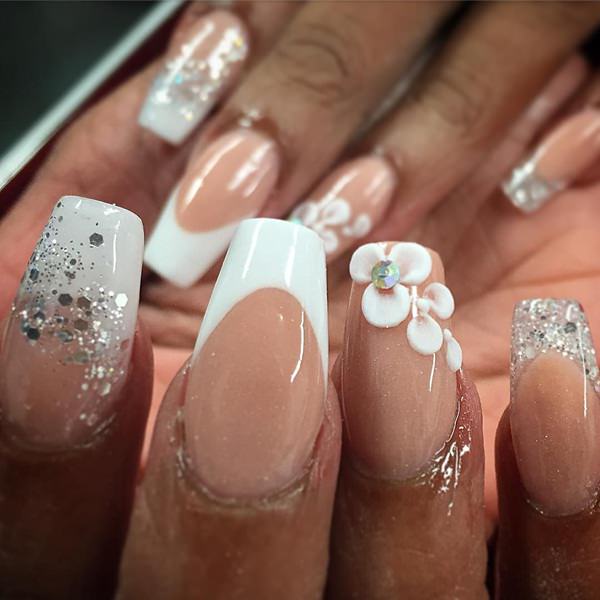 We love acrylic French nails. They make your fingers look healthy and clean.